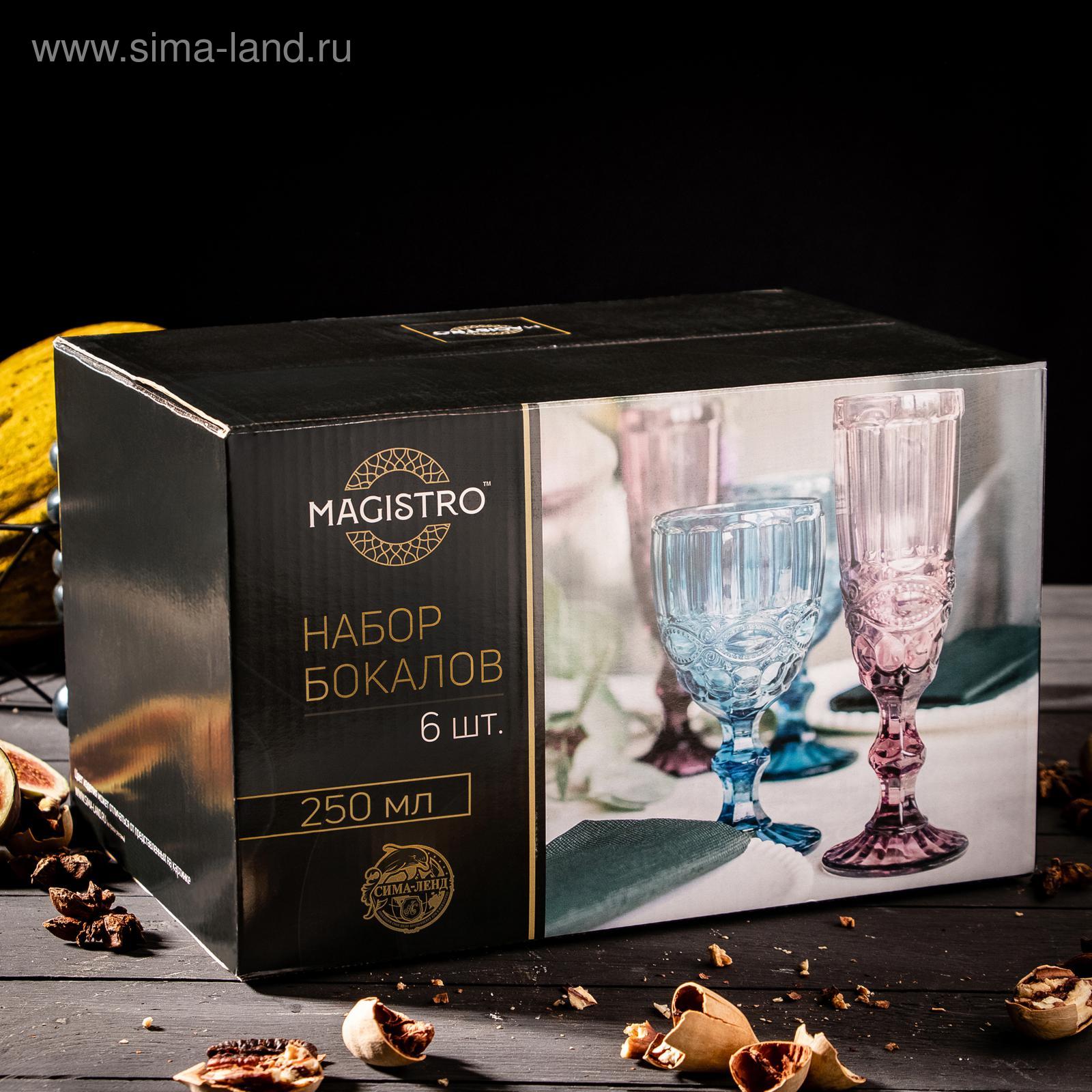 Набор бокалов стеклянных Magistro «круиз», 250 мл, 8x15,3 см, 6 шт, цвет розовый
