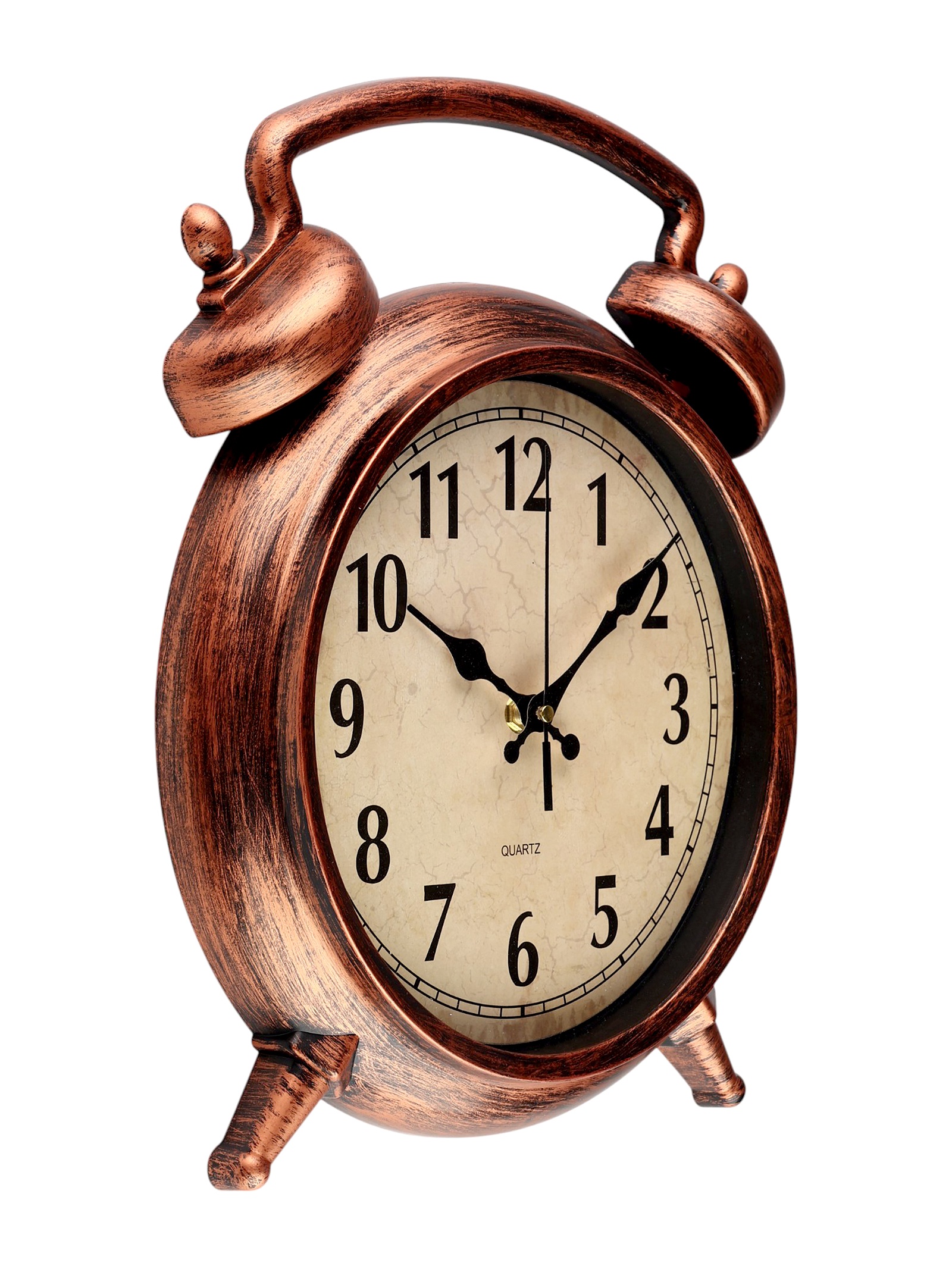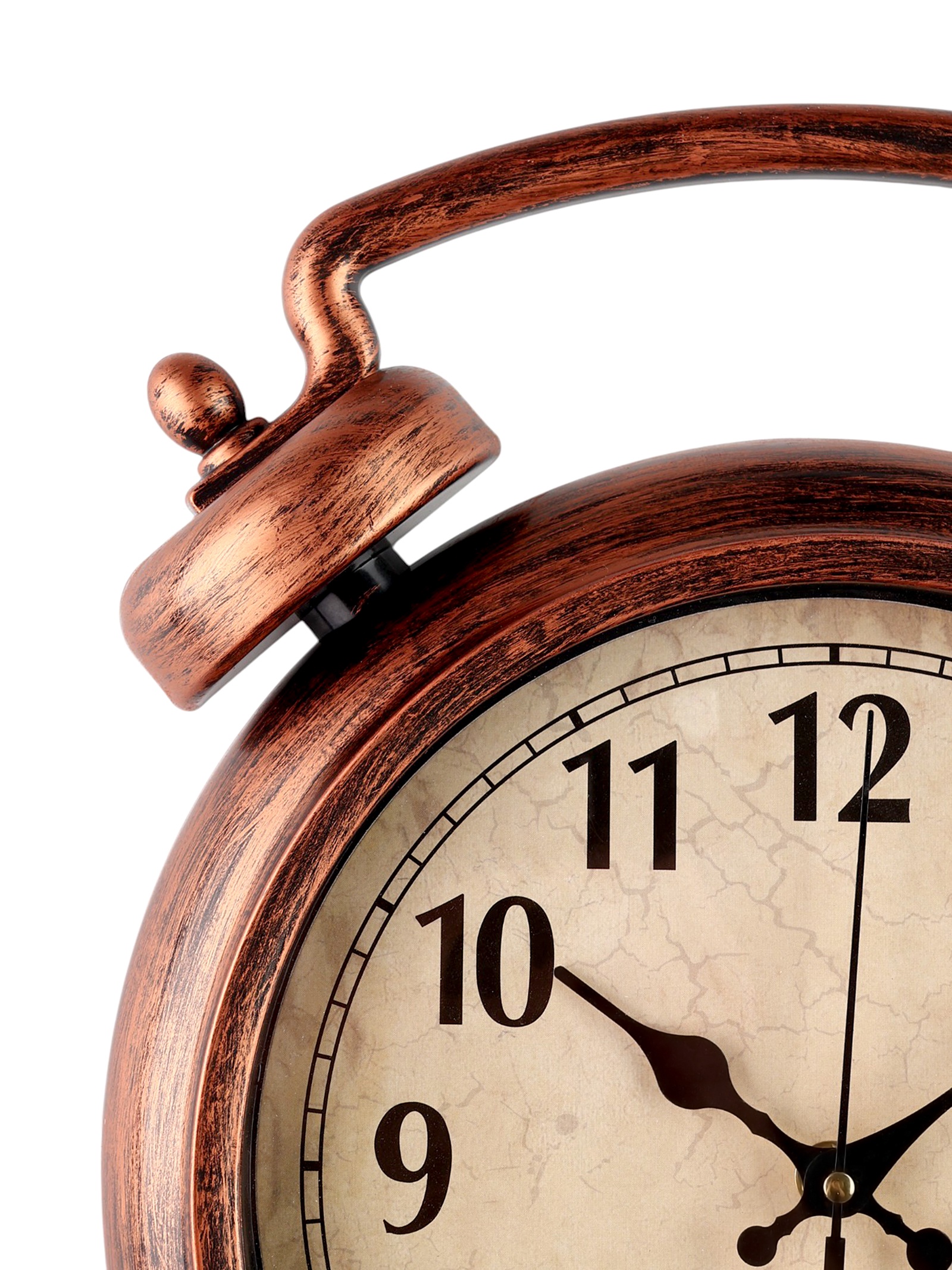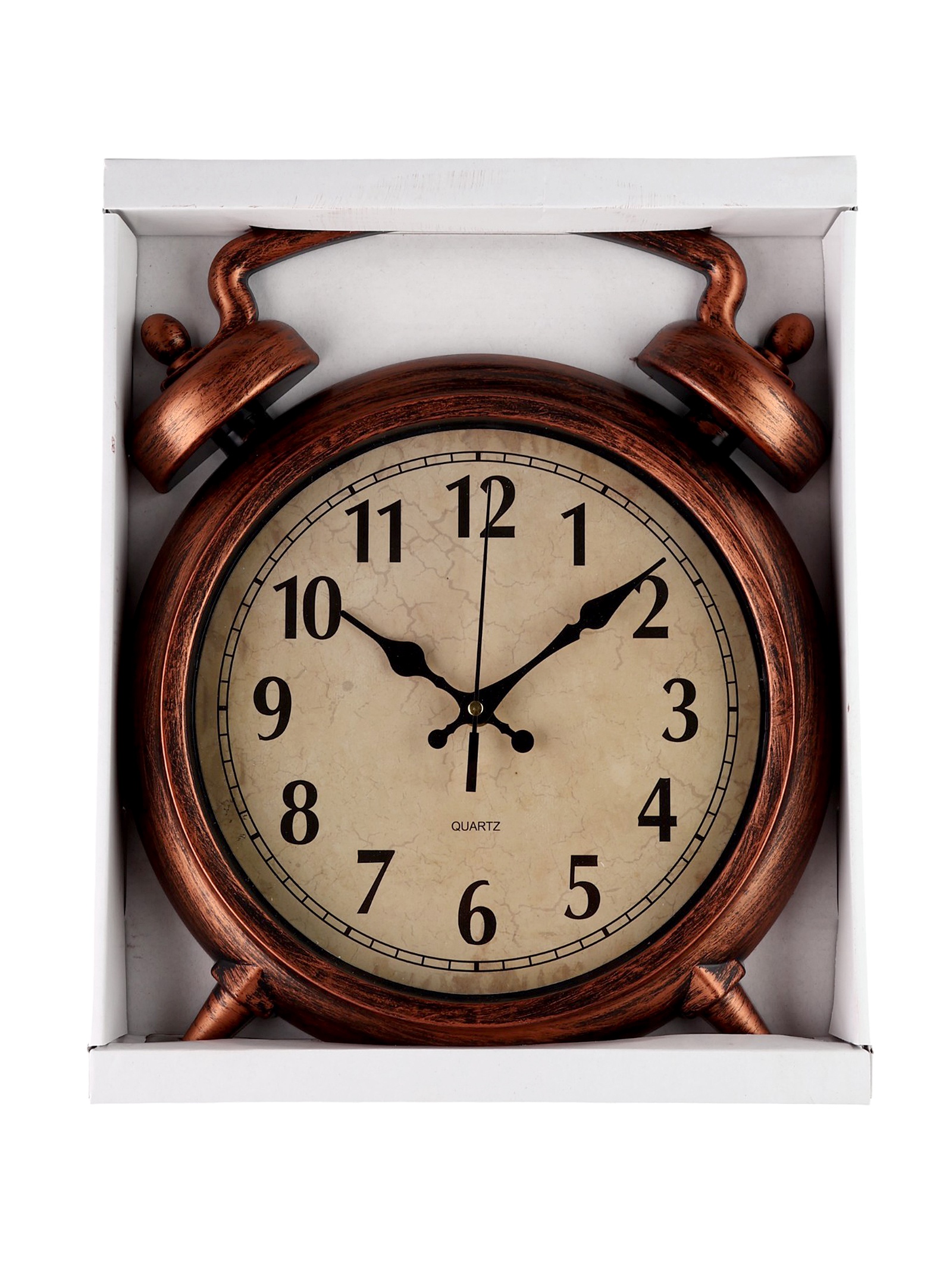 Часы настенные большой будильник, плавный ход, 38 х 28 см, коричневые. Особенности Модель можно разместить в гостиной, спальне или офисе.Корпус часов выполнен из пластика.Тип питания:От батареек|Форма:Фигурная|Размер, см:31 х 28|Ширина, см:28|Высота, см:38|Тематика:Интерьер|Тип индикации:Арабские цифры|Тип механизма:Кварцевый|Цвет циферблата:Бежевый|Материал:Стекло|Материал:Пластик|Работает от сети:Нет|Типоразмер батареек:AA (LR6)|Ход стрелок:Плавный|Цвет корпуса:Медный|Бесшумные:Да|Страна:Китай  развернуть описание ▼
