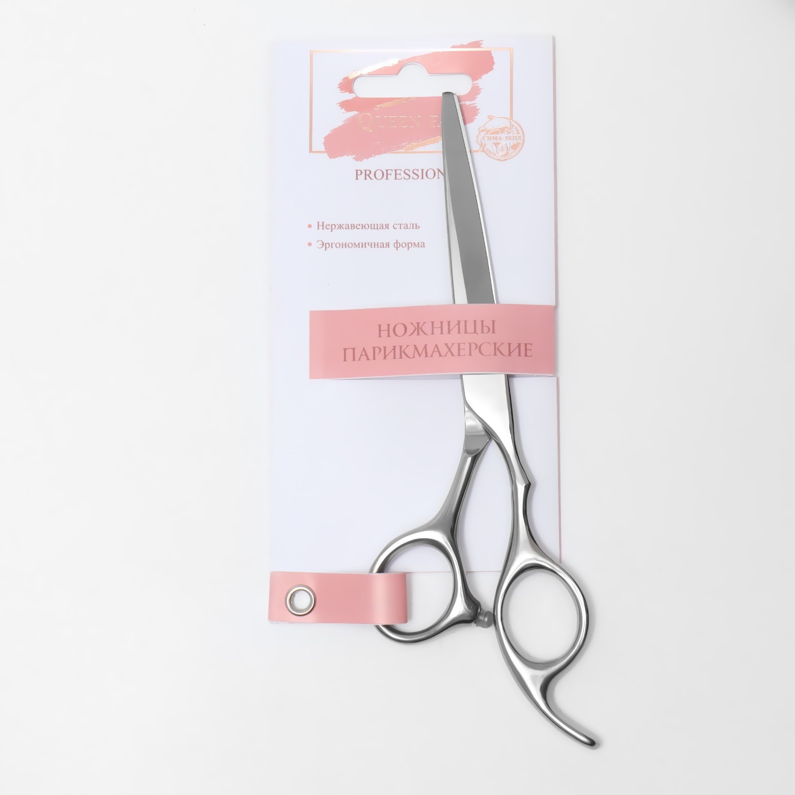 Ножницы парикмахерские с упором, загнутые кольца, лезвие — 5.5 см, серебристые. Главный инструмент парикмахера — это ножницы. Именно поэтому при их выборе следует обращать внимание на удобную конструкцию, а также материал, из которого изготовлено изделие. Металлические хромированные ножницы служат дольше аналогов без покрытия, устойчивы к износу и ржавчине, сохраняют свой первоначальный внешний вид и не вызывают аллергии. Удобства в использовании добавит дополнительный упор для мизинца. Благодаря выступу из кольца ножницы легче держать и работать ими. А пластиковые накладки внутри предотвратят натирание пальцев. Размер: 5,5 . Цвет:Серебристый|Длина лезвия, см:5.5|Вид упаковки:Подложка|Материал:Металл|Покрытие:Хром|Назначение ножниц:Для стрижки|Регулируемые (винт):Да|Упор:Да|Размер, дюйм:5.5|Страна:Китай  развернуть описание ▼