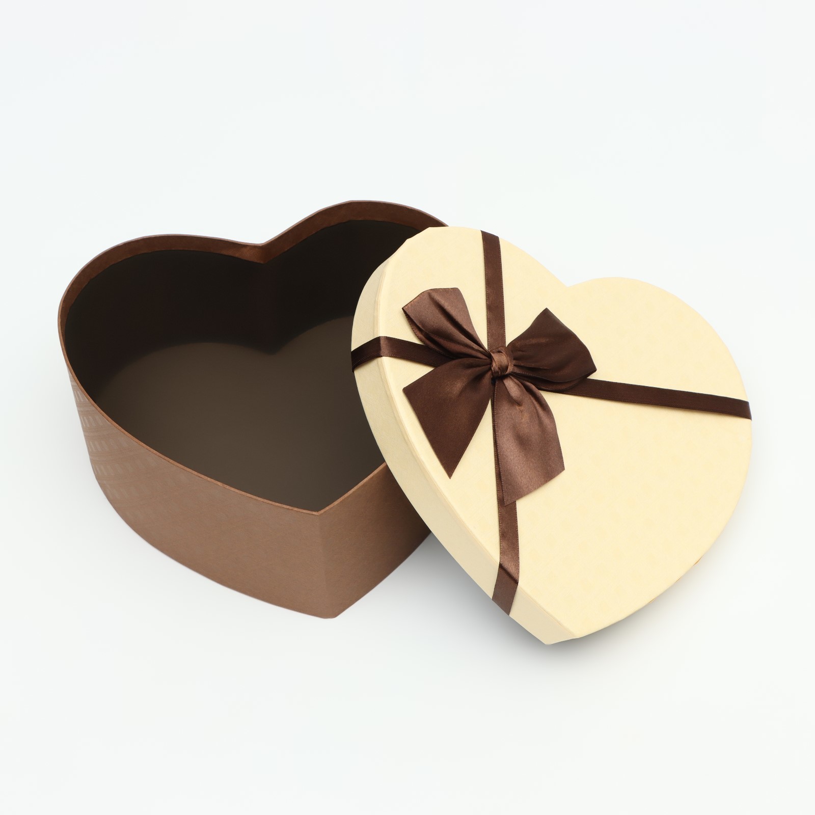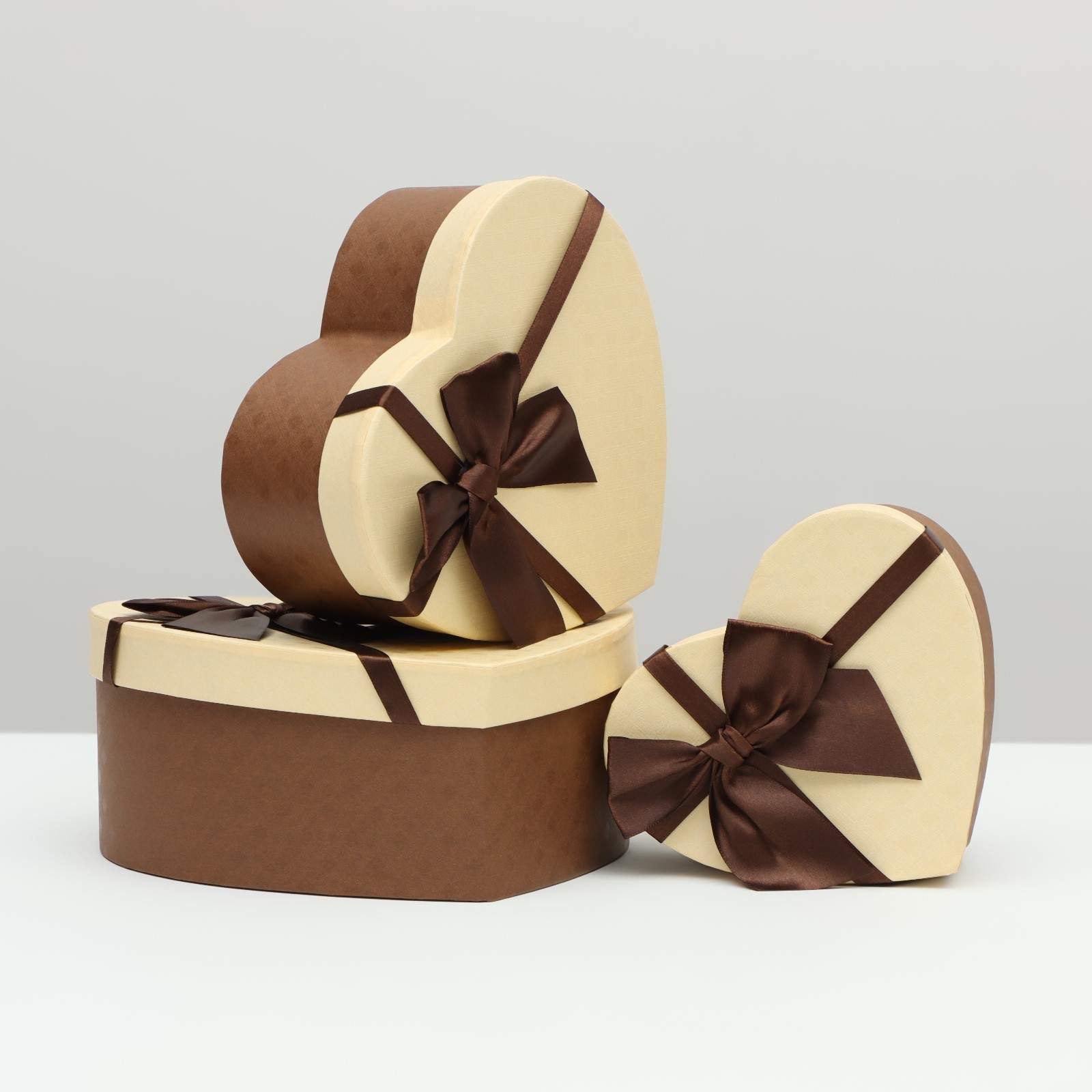 Набор подарочных коробок 3 в 1 сердца, коричневый, 21 19 9 - 15.5 14 6 см. Подарочные коробки - идеальное решение для упаковки вашего подарка на 8 марта, 23 февраля, 14 февраля, Новый год, Рождество, день рождения и другие праздники. Во-первых, подарочная упаковка смотрится стильно благодаря красивому дизайну. Во-вторых, очень практично и можно поместить сразу несколько презентов. В-третьих, создаёт интригу для человека, которому приготовили подарок. Так же коробки можно использовать для хранения аксессуаров дома. Набор:Да|Цвет:Коричневый|Форма:Сердце|Плотность, г/м :1200|Количество вложений в наборе :3 в 1|Высота большей коробки, см:9|Ширина большей коробки, см:19|Длина большей коробки, см:21|Тематика:Однотонная|Тематика:Банты|Рисунок:Нет|Тематика праздника:14 Февраля|Тематика праздника:Свадьба|Тематика праздника:8 Марта|Материал:Картон|Декоративные элементы:Бантик|Вид:Коробки|Вид:Жёсткие (крышка+дно)|Вид:Наборы коробок|Вид:Фигурные|Размер:Средний (18-24 см)|Страна:Китай  развернуть описание ▼