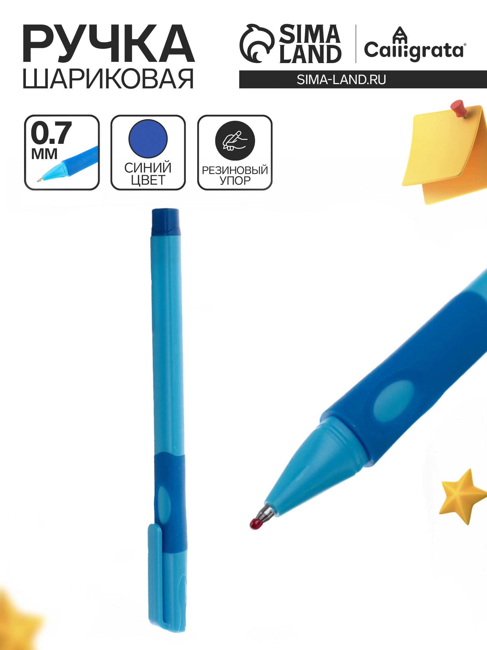 Ручка шариковая 0.7 мм, стержень синий, корпус синий с резиновым держателем, для правшей (цена за 1 шт.)