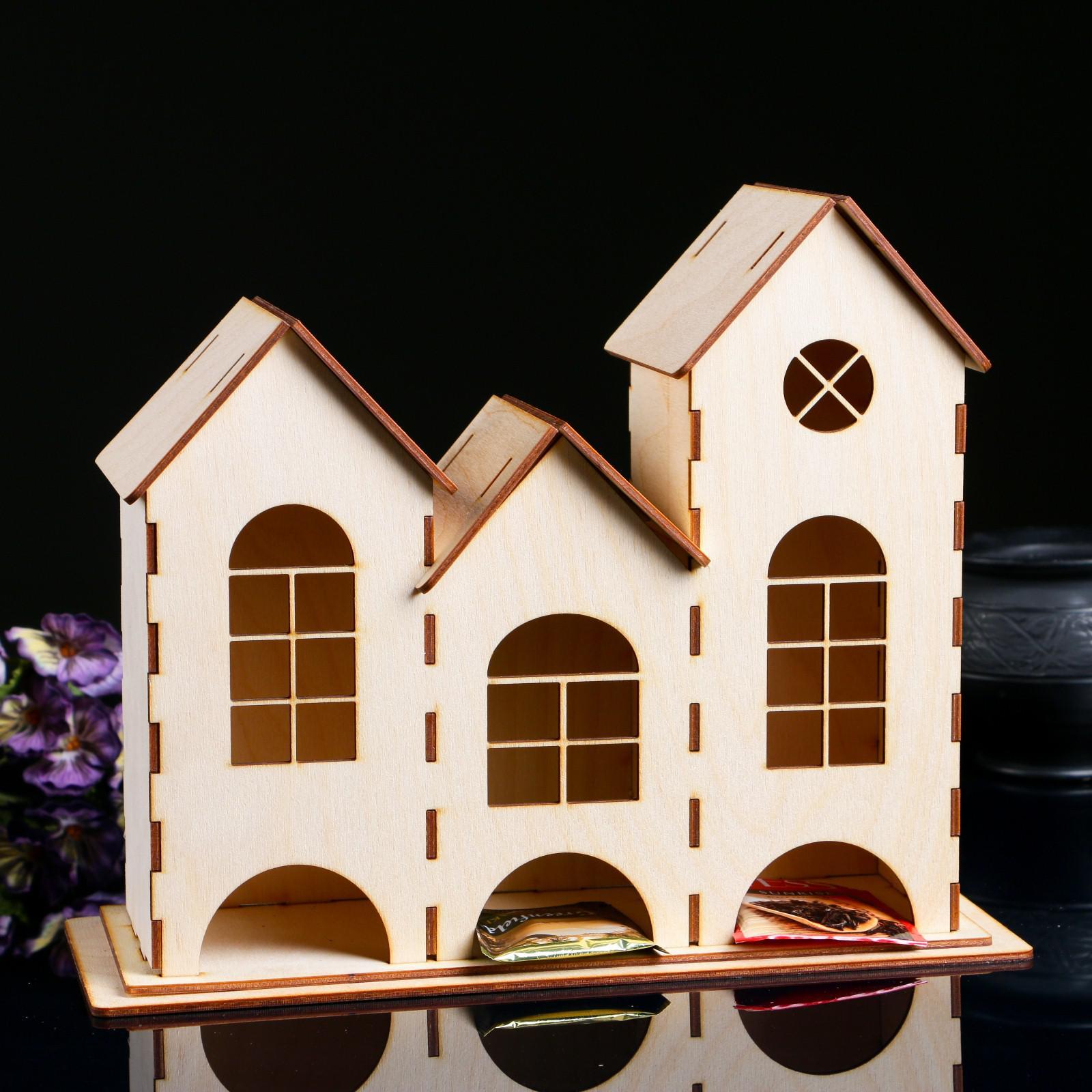 Заготовка для декупажа "чайный домик низкий" 3 секции разной высоты 31х 13 х 25 см