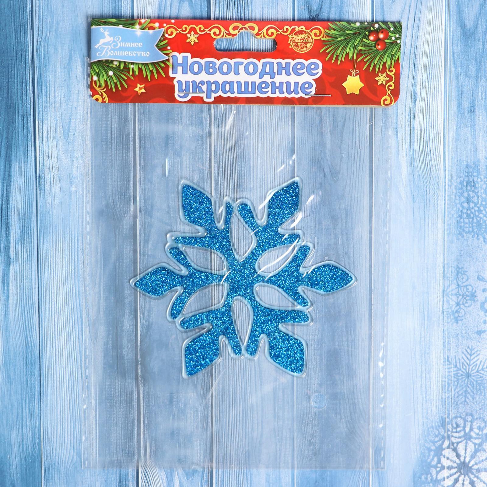 Наклейка на стекло «синяя снежинка», с блеском, 11.5 11.5 см