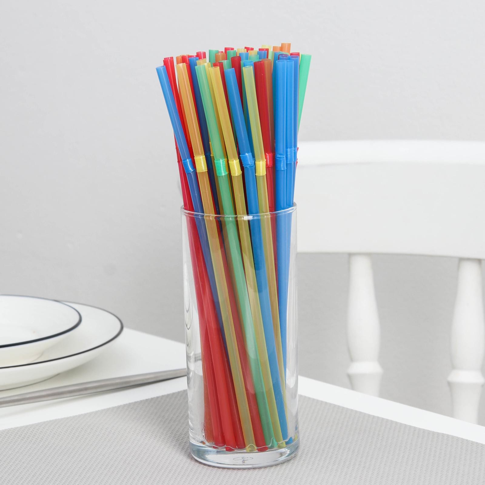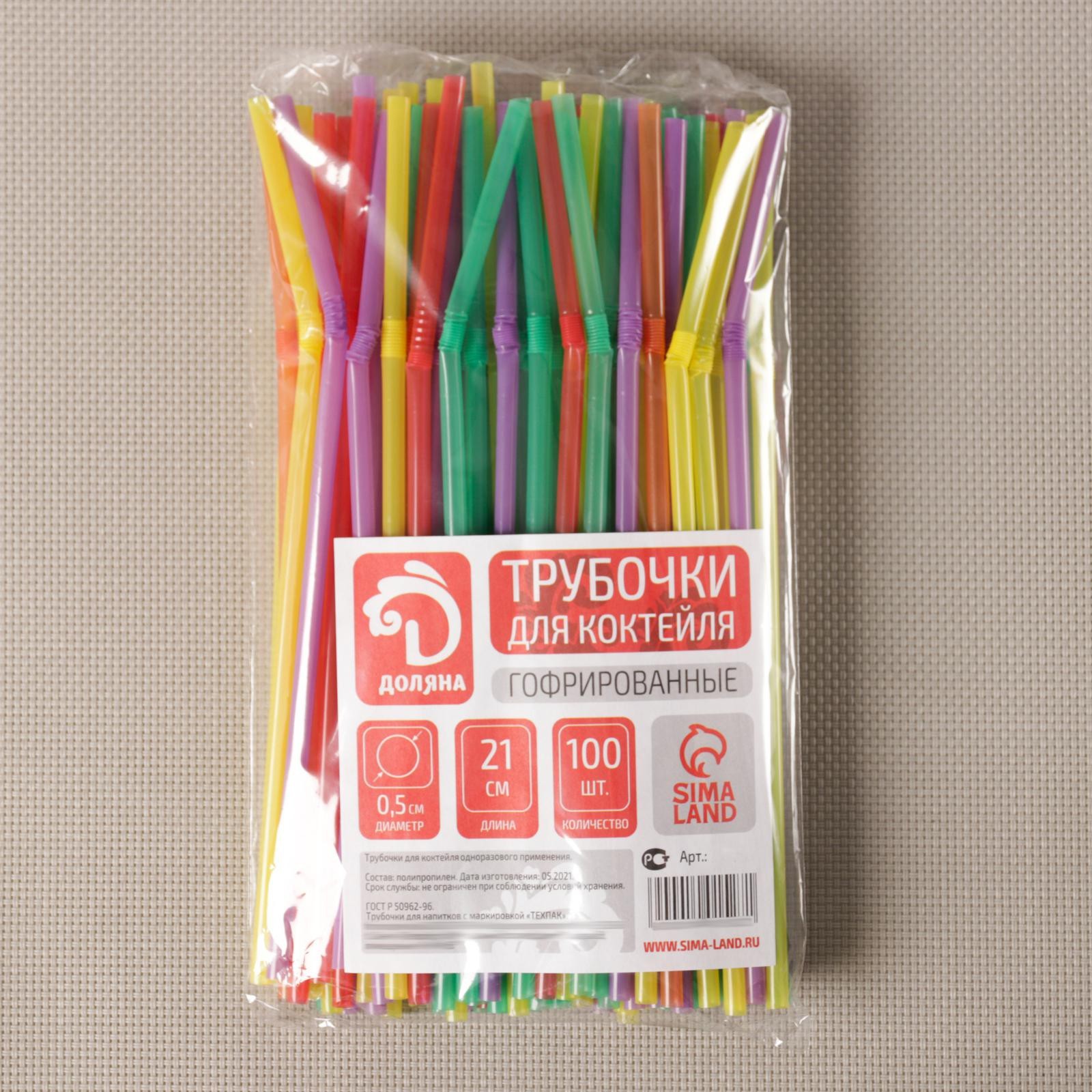 Трубочки одноразовые для коктейля доляна, 0,5x21 см, 100 шт, с гофрой, цвет микс