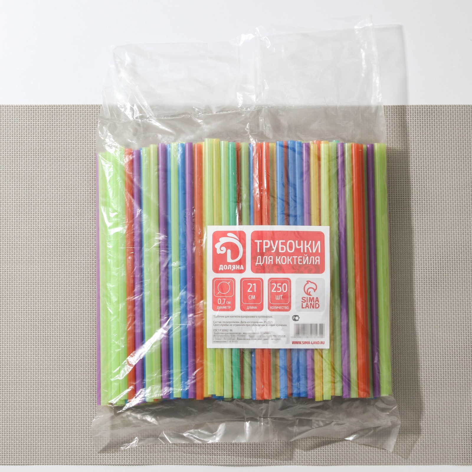 Трубочки одноразовые для коктейля доляна Fresh, 0,7x21 см, 250 шт, цвет микс