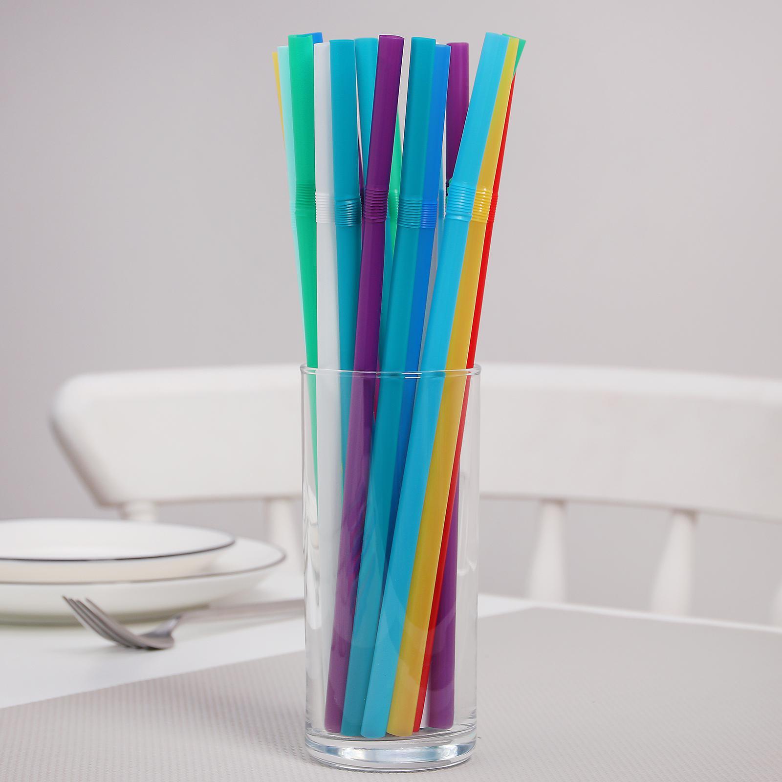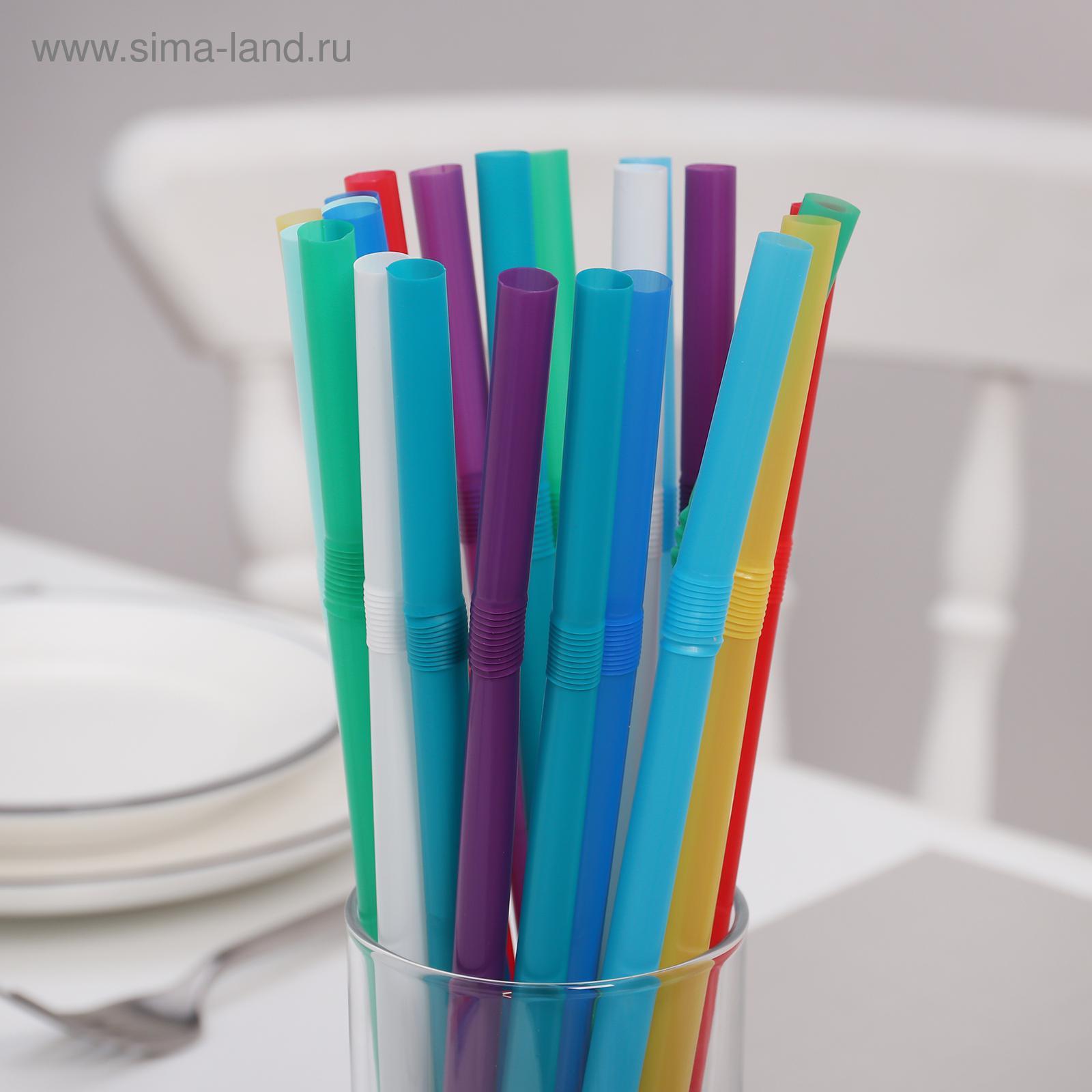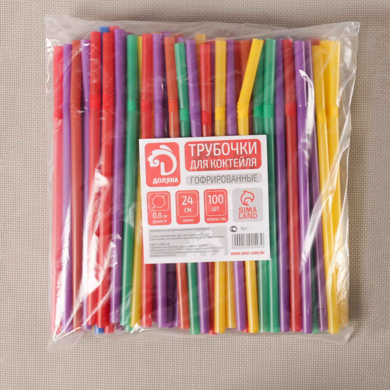 Трубочки одноразовые для коктейля доляна, 0,8x24 см, 100 шт, с гофрой, цвет микс