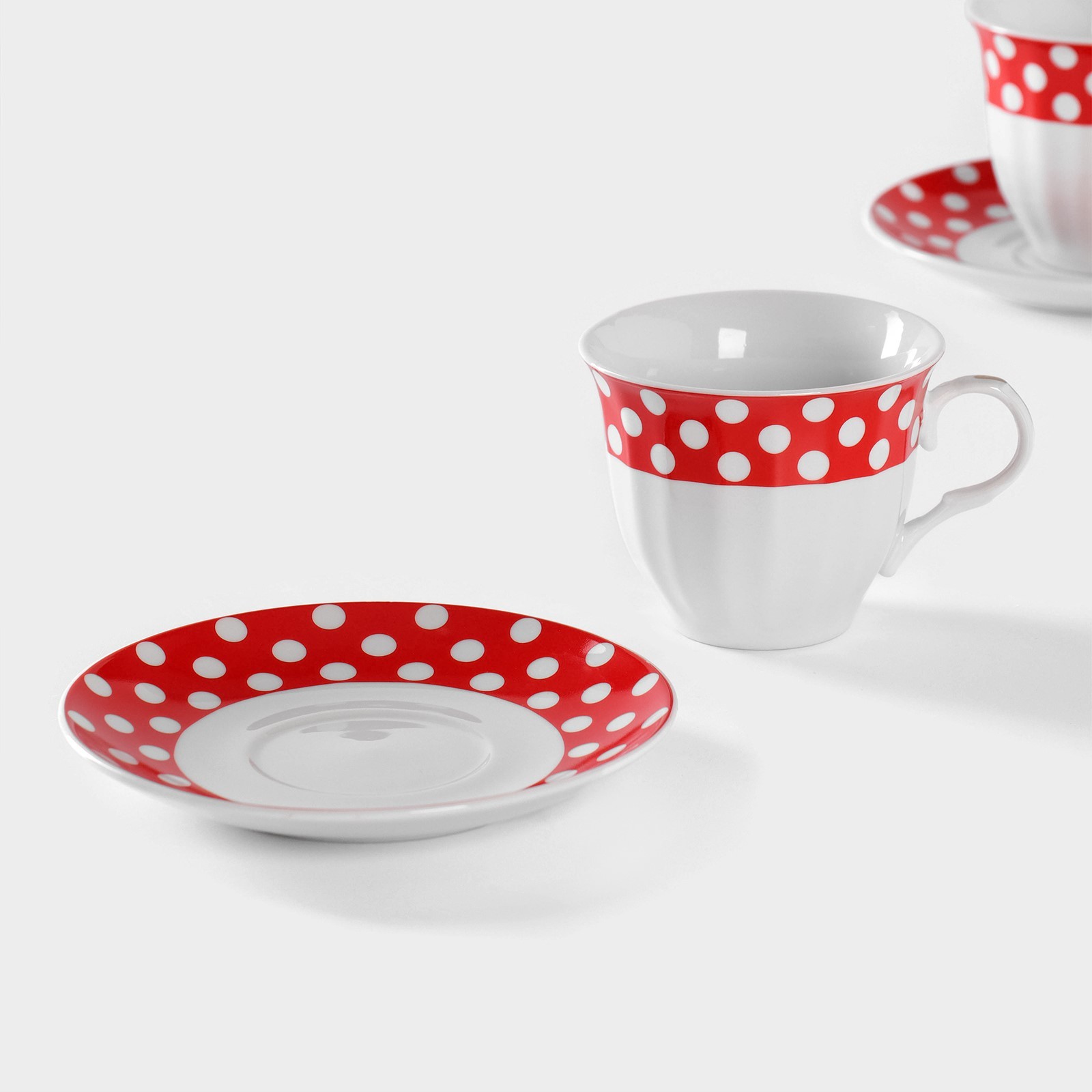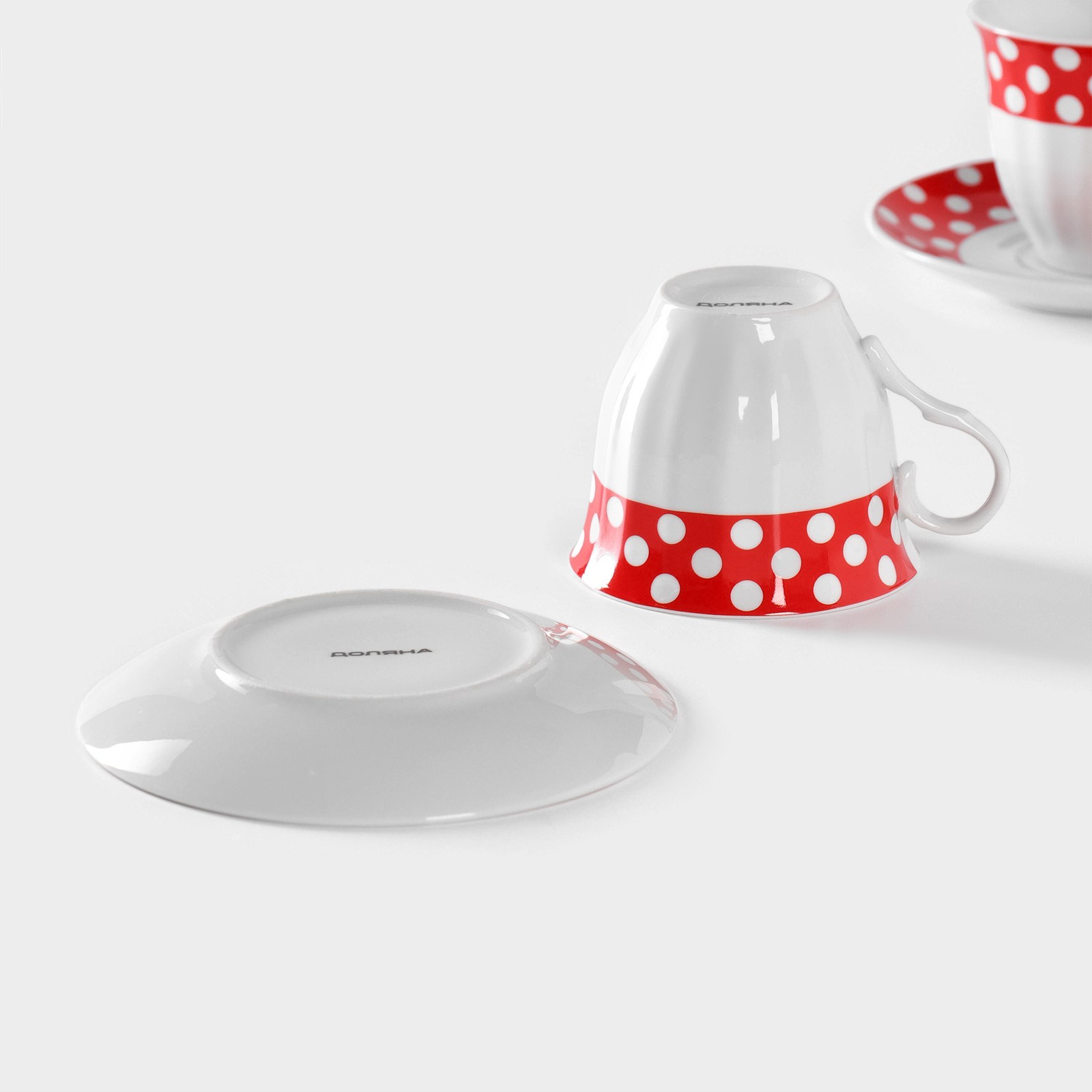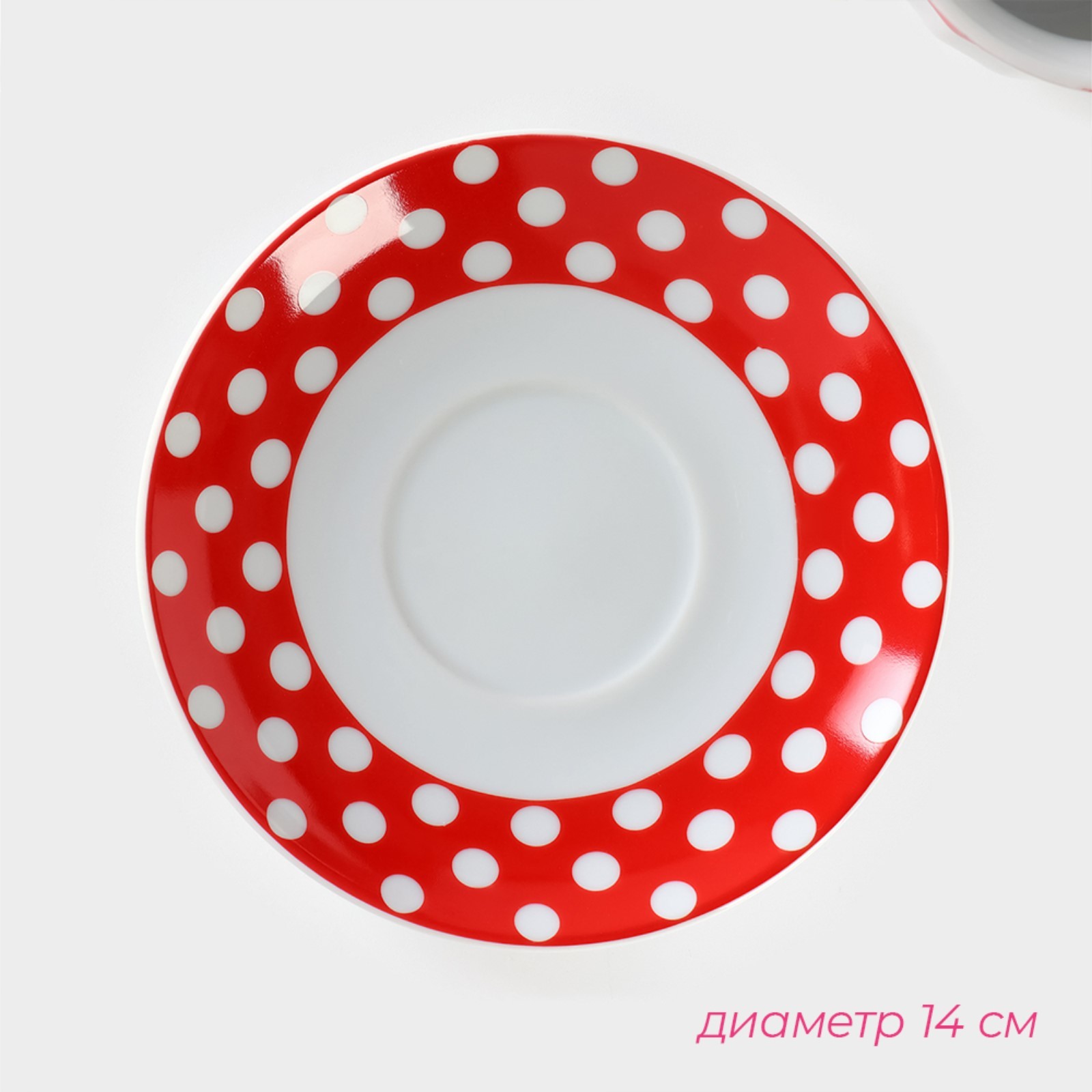 Сервиз чайный керамический доляна «горох», 4 предмета: 2 чашки 210 мл, 2 блюдца D=14 см, цвет красный