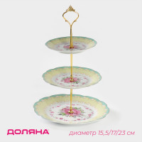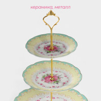 Array. Используйте это многоярусное блюдо для сервировки. Элегантная посуда позволит удобно и красиво разместить на столе пирожные, фрукты или бутерброды. Особенности: простота сборки, стильный дизайн, удобная петля для переноски, лёгкость мойки. Цвет: Разноцветный Форма: Круглая Диаметр, см: 15.5 Диаметр, см: 17 Диаметр, см: 23 Количество ярусов: 3 Тематика: Цветочно-растительная Материал: Керамика Текстура: Гладкая Особенности: Без особенностей Запрет реализации по сегментам: 00000000485  развернуть описание ▼