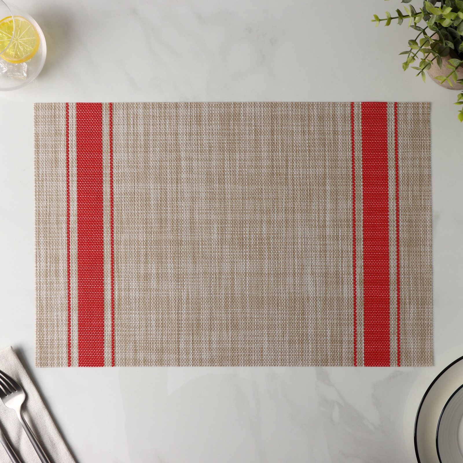Салфетка сервировочная на стол «две полосы», 45x30 см, цвет красный