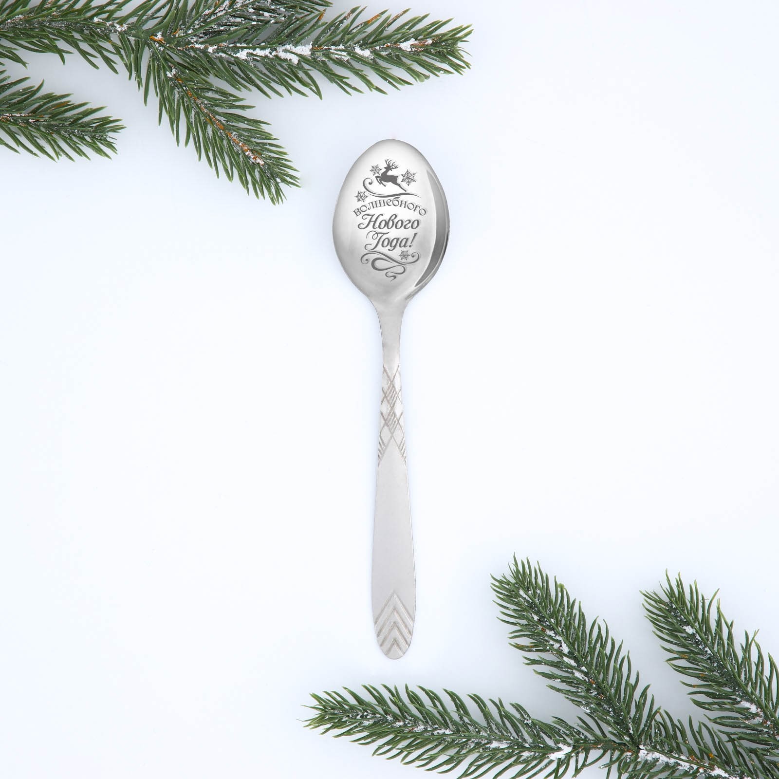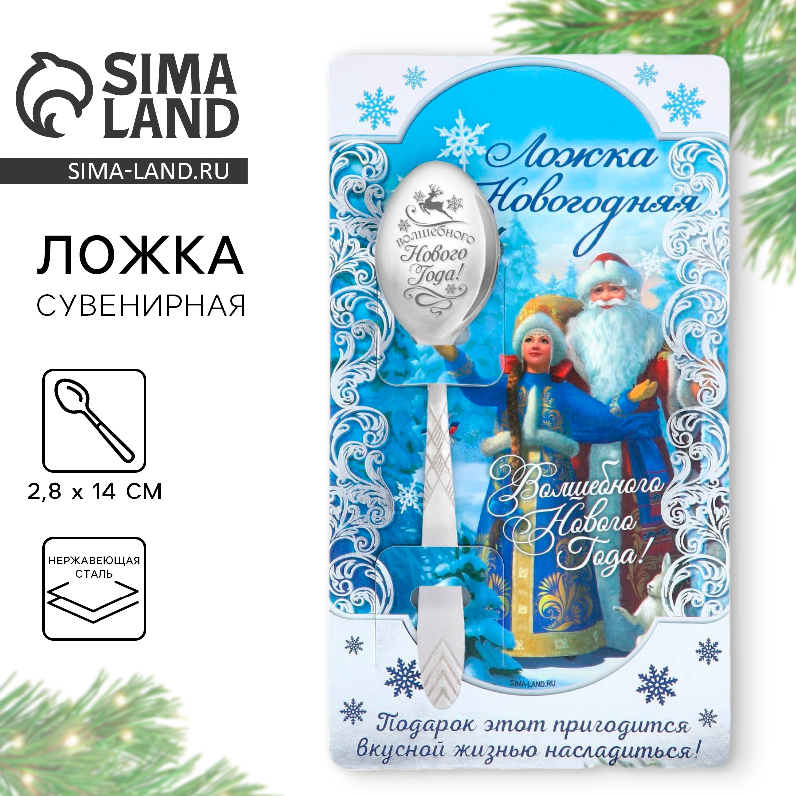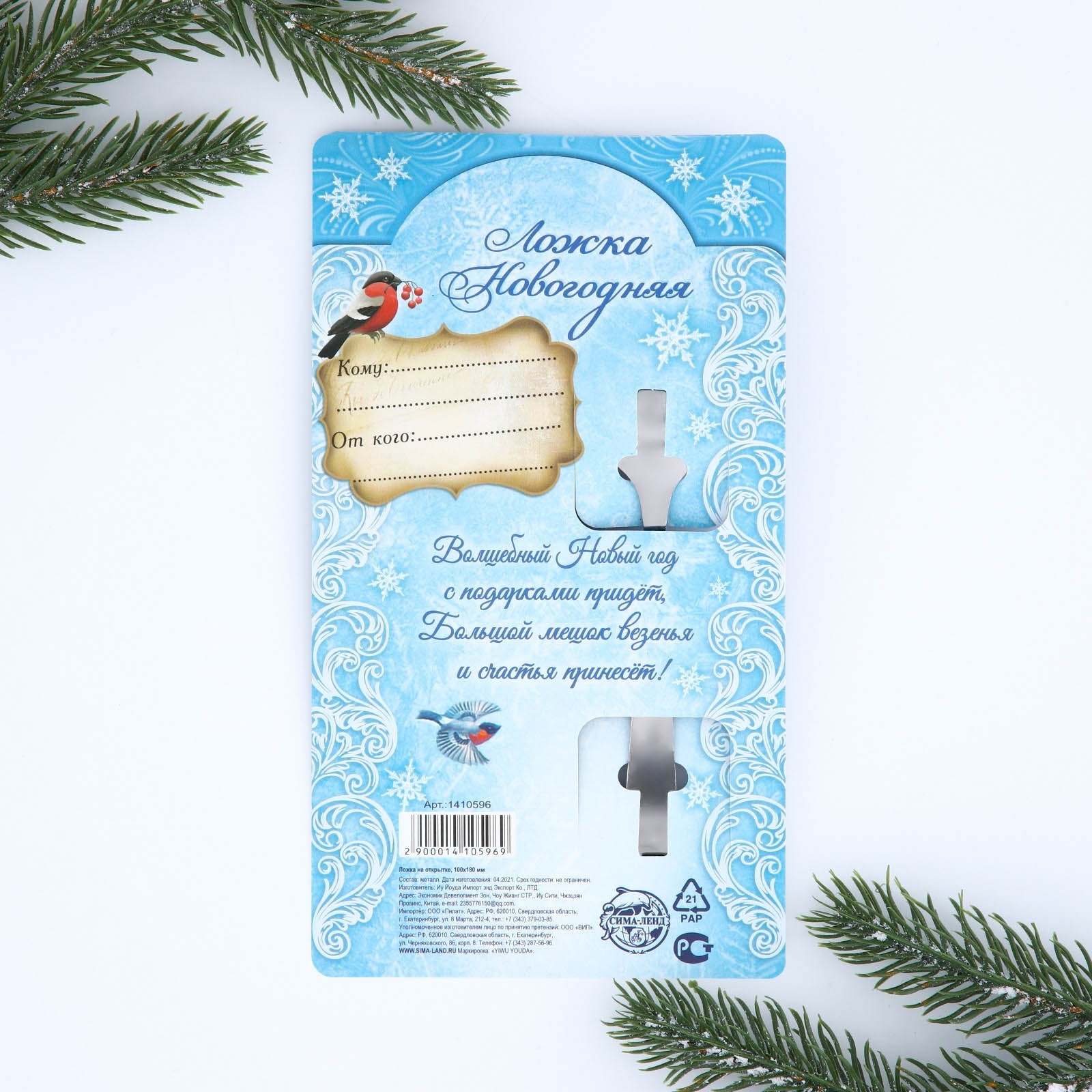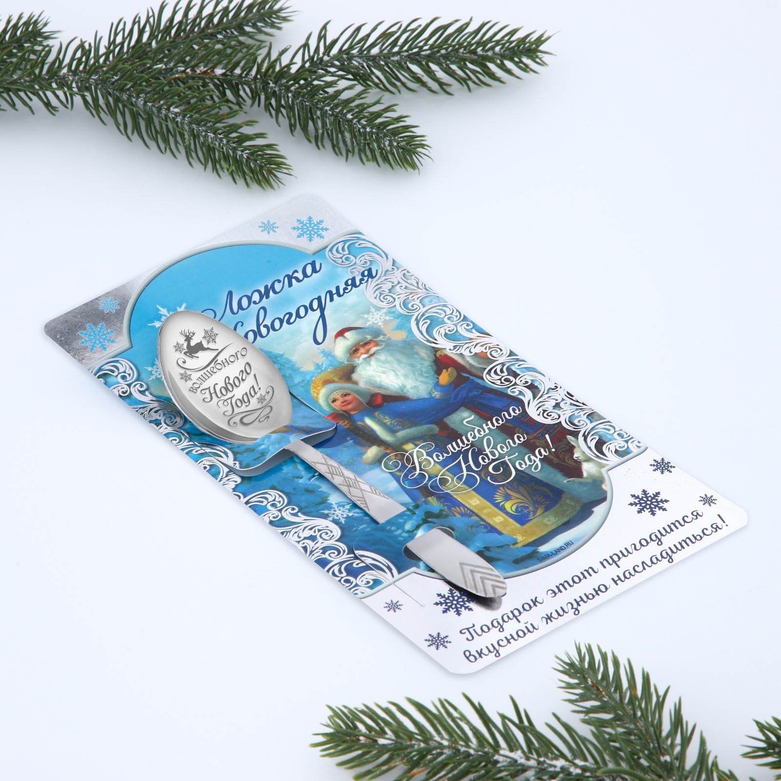 Ложка новогодняя сувенирная на открытке «волшебного нового года», на новый год, 2,8 х 14 см. Новый год — праздник, который с нетерпением ждут и взрослые, и дети. Это день, когда все мы не просто хотим получить подарок, а попасть на мгновение в сказку, наполненную чудесами и волшебством. Ложка новогодняя сувенирная на открытке «Волшебного Нового года», на Новый год, 2, 8 х 14 см — чудесный подарок, способный сделать грядущий год таким, каким вы пожелаете! В данной серии вы найдёте сувенир на любой вкус. Пожелайте близким и родным богатства, прибыли, счастья или удачи, а современный новогодний дизайн открытки и тёплые слова никого не оставят равнодушным, и ваш подарок запомнится надолго! Цвет: Серебристый Для кого: Унисекс В наборе, шт.: 1 Материал ручки: Металл Вид упаковки: Подложка Материал: Металл Назначение: Чайные Назначение: Сувенирные Можно мыть в посудомоечной машине: Да Цвет ручки: Серебристый Матовая поверхность: Нет Внешний вид: Новогодние  развернуть описание ▼