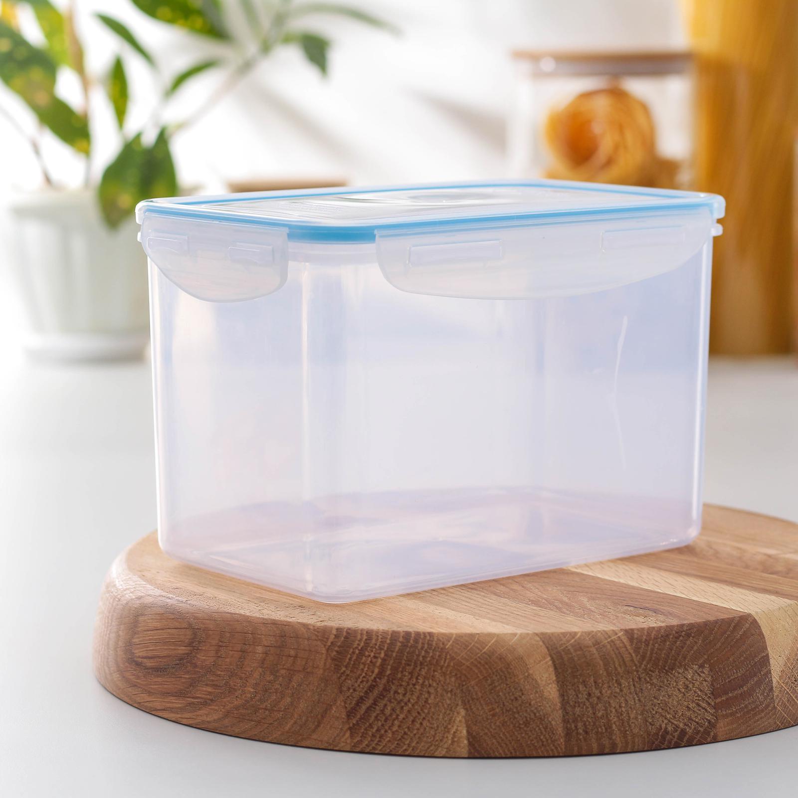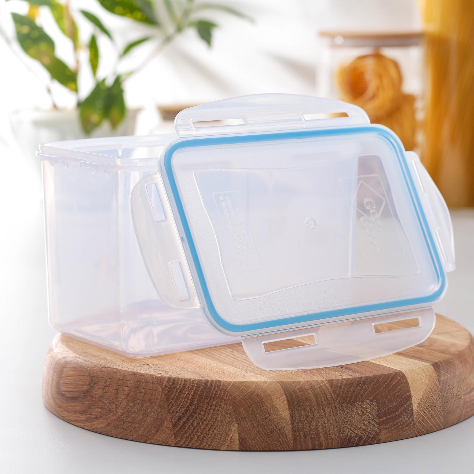 Контейнер пищевой good & good, 2,2 л, с герметичной крышкой. Современный ритм жизни зачастую не позволяет нам всецело насладиться домашней едой. К счастью, теперь вы можете побаловать себя любимой пищей в любое время и в любом месте благодаря пищевому контейнеру Good & Good! Изделие, выполненное из качественного пищевого пластика, снабжено герметично закрывающейся крышкой с силиконовой прокладкой. Это значит, что вы можете смело брать с собой на работу, в дорогу или на пикник самую разнообразную еду: салаты, супы, вторые блюда, десерты, свежие овощи и фрукты. Материал изделия сохранит первозданные вкус и аромат продуктов. Кроме того, пластик отличается гладкостью и термостойкостью, что даёт важные преимущества: изделие можно хранить в холодильнике; контейнер пригоден для разогрева в СВЧ-печах;блокирующие клипсы обеспечивают максимальную безопасность хранения продуктов;моется просто и быстро. Силиконовая прокладка и современные защёлки являются гарантом комфортного и многократного открытия-закрытия крышки (более 500 000 циклов). Питайтесь вкусной домашней едой и заботьтесь о своём здоровье! Цвет: Прозрачный Форма: Прямоугольная parts count: 0 Объём, л: 2.2 Объём, мл: 2200 Крышка: Да Материал: Пластик Герметичная крышка: Да Колёса/ролики: Нет Температурное ограничение: Нет Можно использовать в СВЧ-печи: Да Пищевой пластик: Да Назначение: Универсальная Назначение: Для сыпучих Форма: Прямоугольник Цвет крышки: Прозрачный Особенности: С защёлкой Особенности: Герметичный  развернуть описание ▼