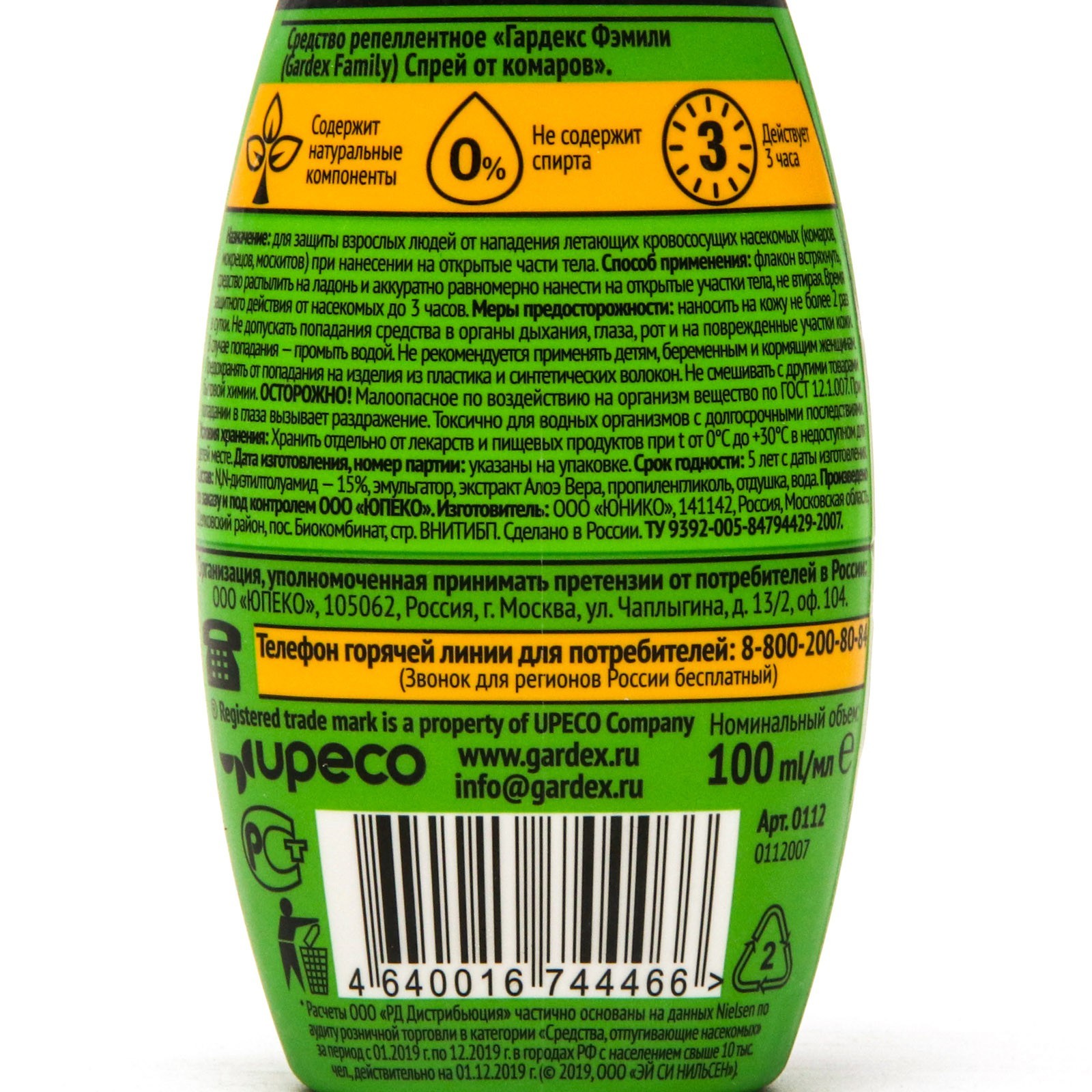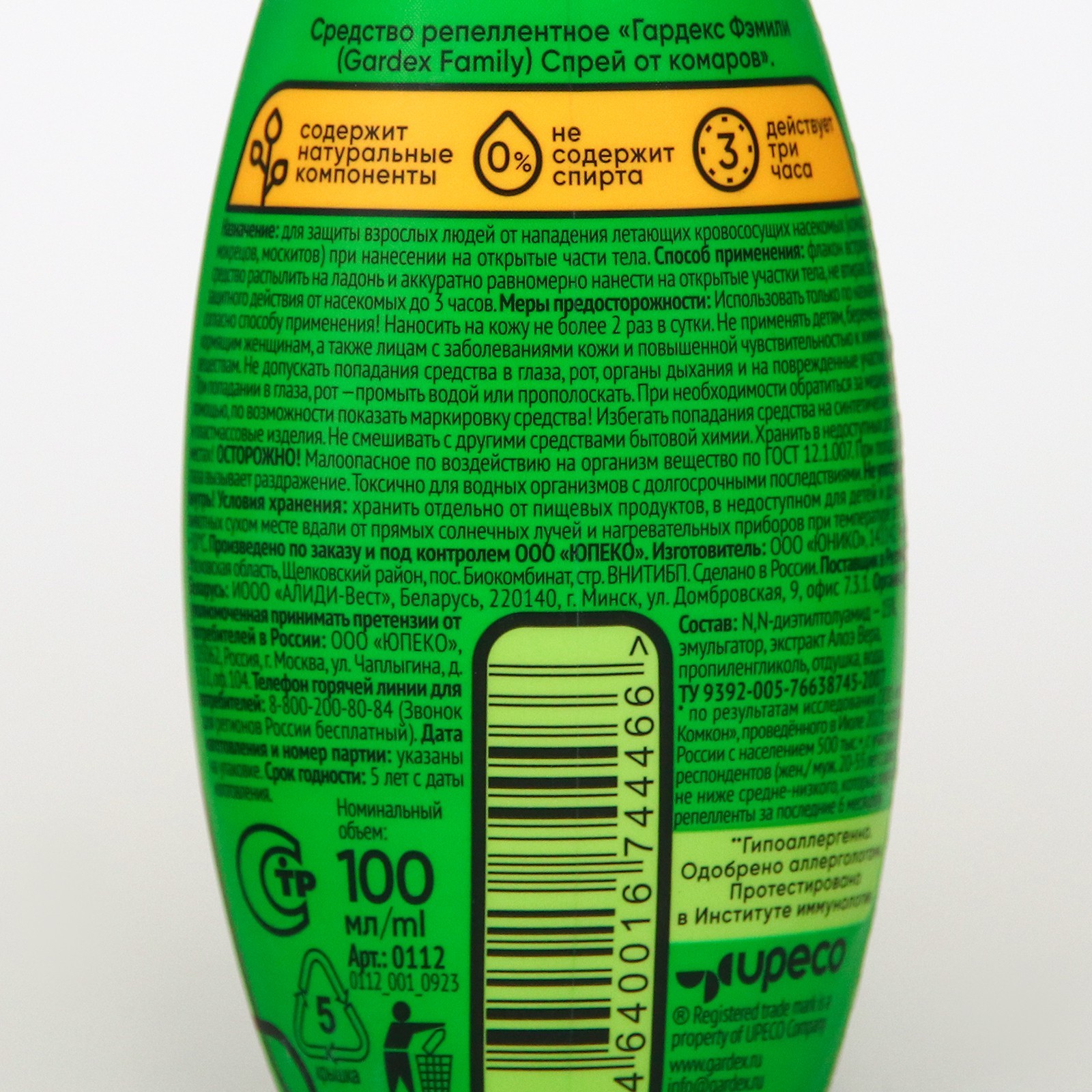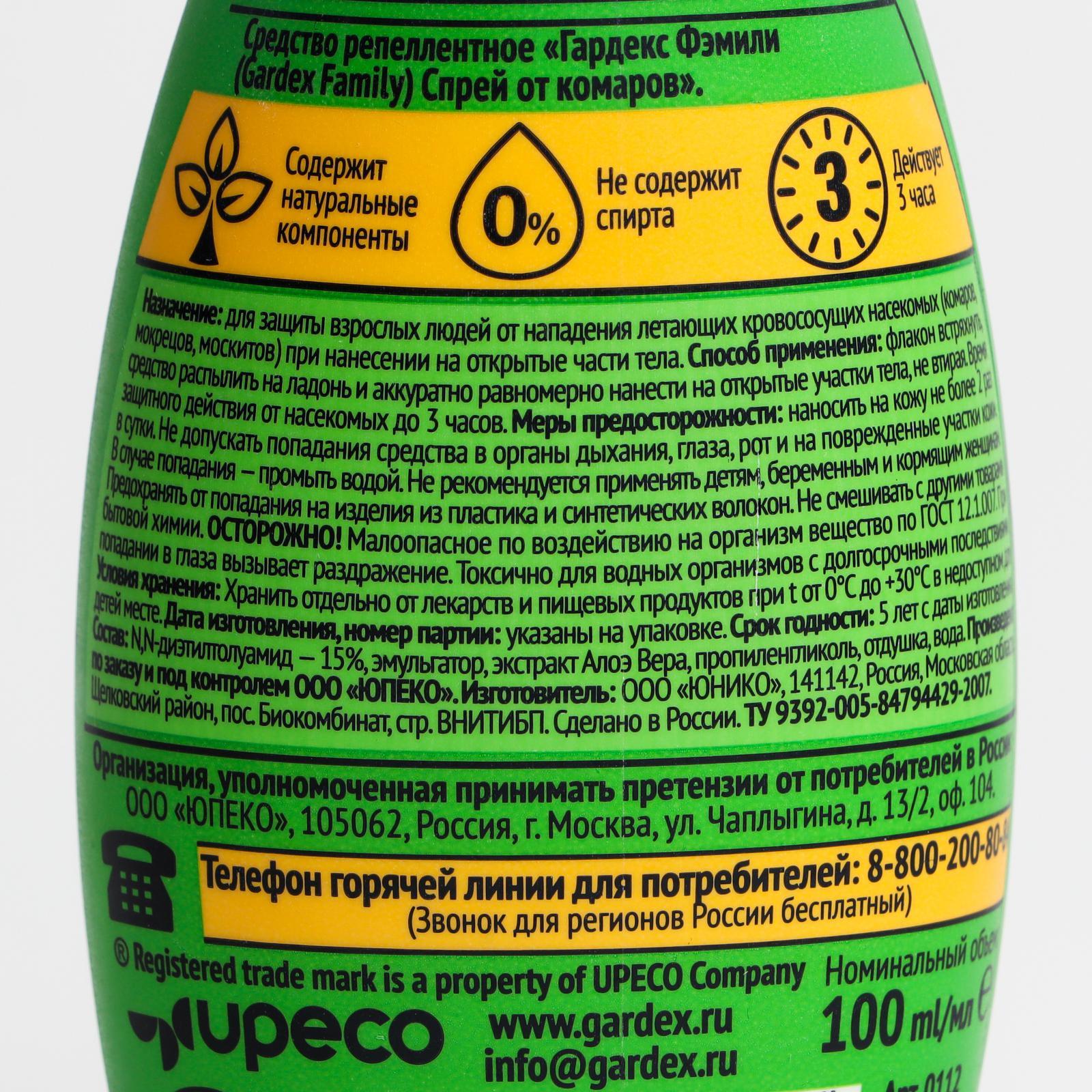 Спрей репеллентный от комаров "Gardex Family", с алоэ вера, 100 мл
