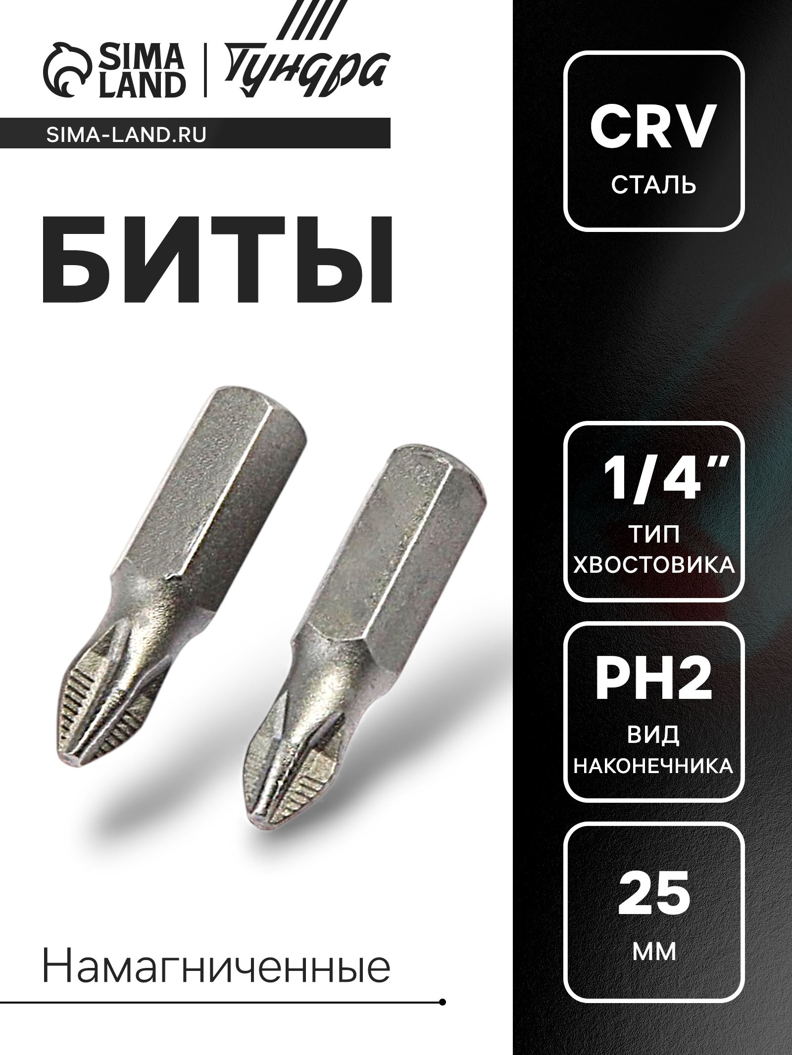 Биты тундра, намагниченные, сталь Crv, Ph2 х 25 мм, 2 шт.