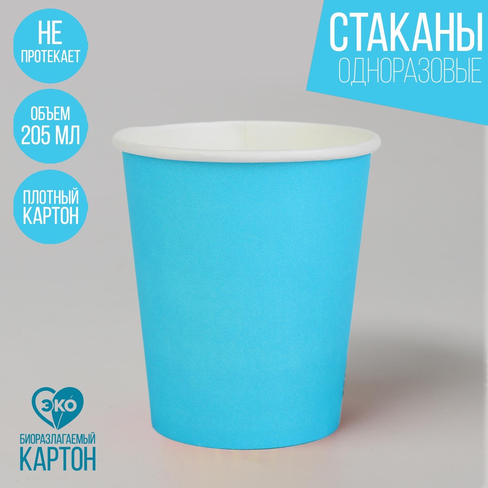Стакан одноразовый бумажный однотонный, голубой цвет 205 мл Стакан одноразовый бумажный однотонный, голубой цвет 205 мл Стакан одноразовый бумажный однотонный, голубой цвет 205 мл