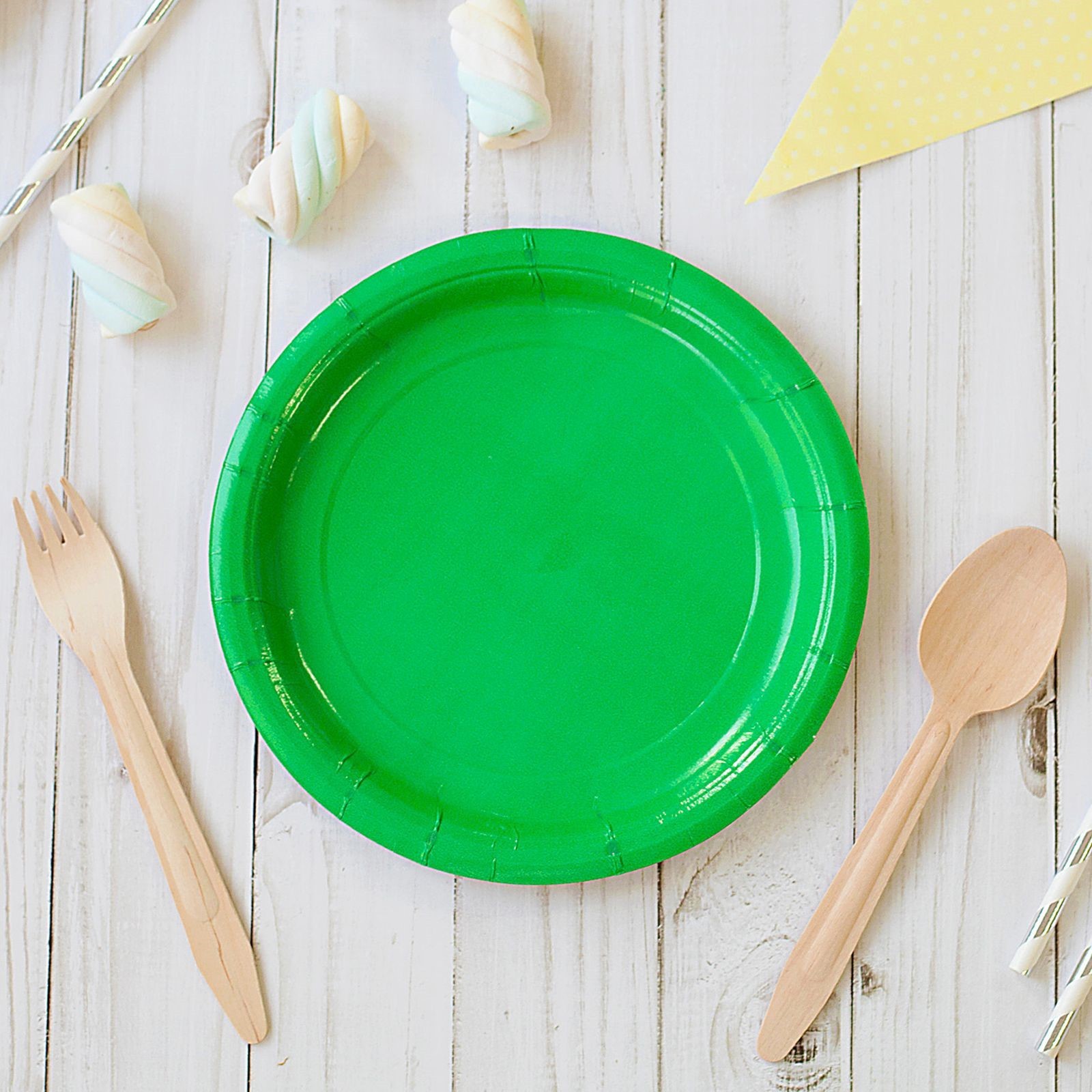 Тарелка одноразовая бумажная однотонная, зеленый цвет (18 см)