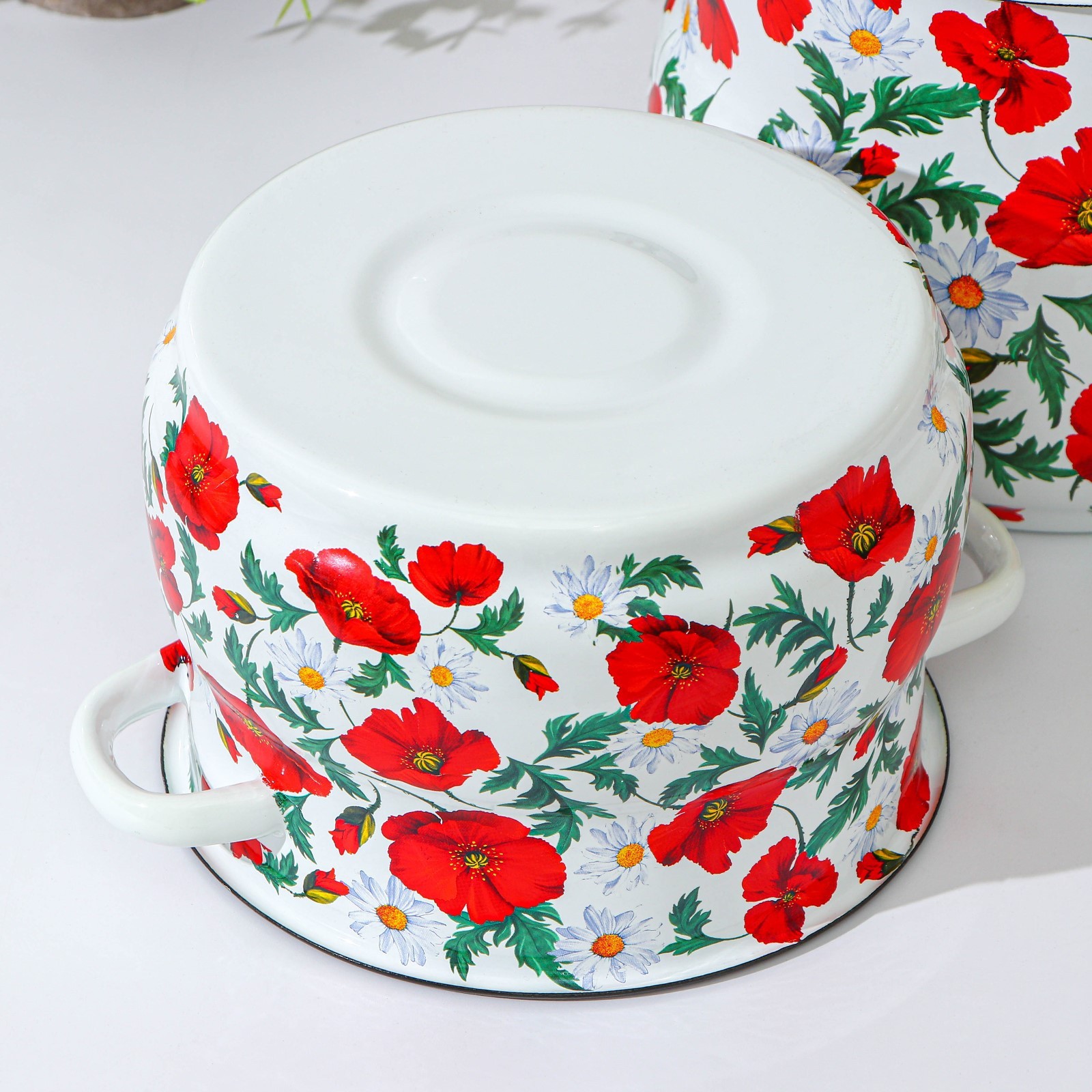 Кастрюли сделаны из качественной стали, покрытой эмалью с декоративным рисунком. Они отлично подходят для приготовления и хранения различных блюд.