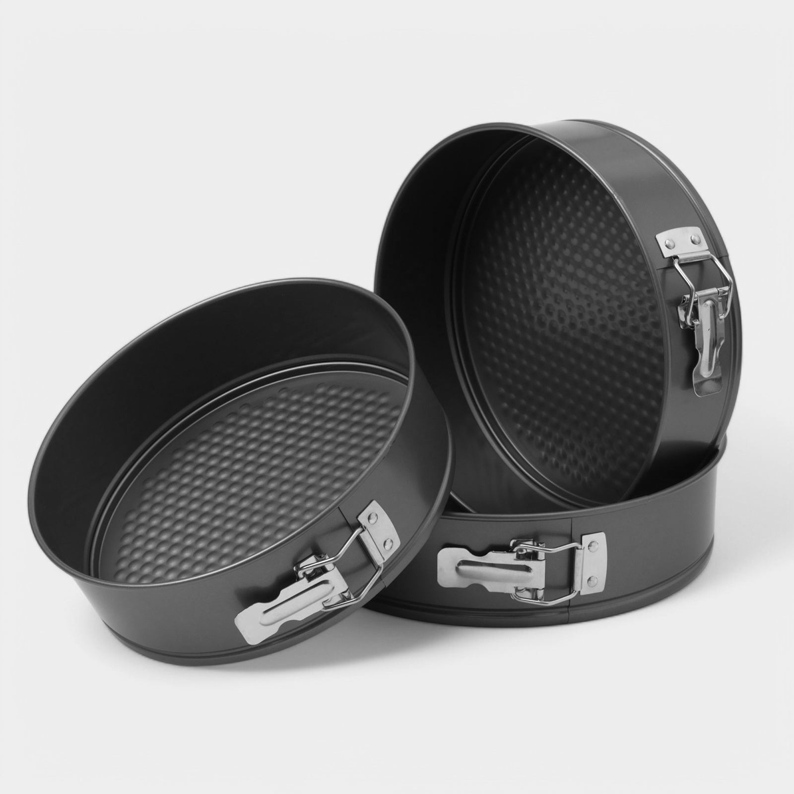 Набор форм для выпечки доляна «элин. круг», 3 предмета: d=22/24/26 см, съёмное дно, антипригарное покрытие, чёрный.