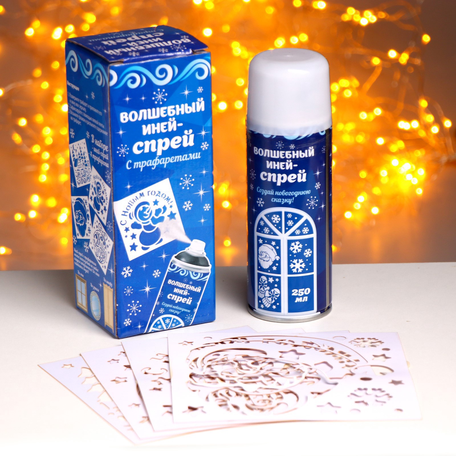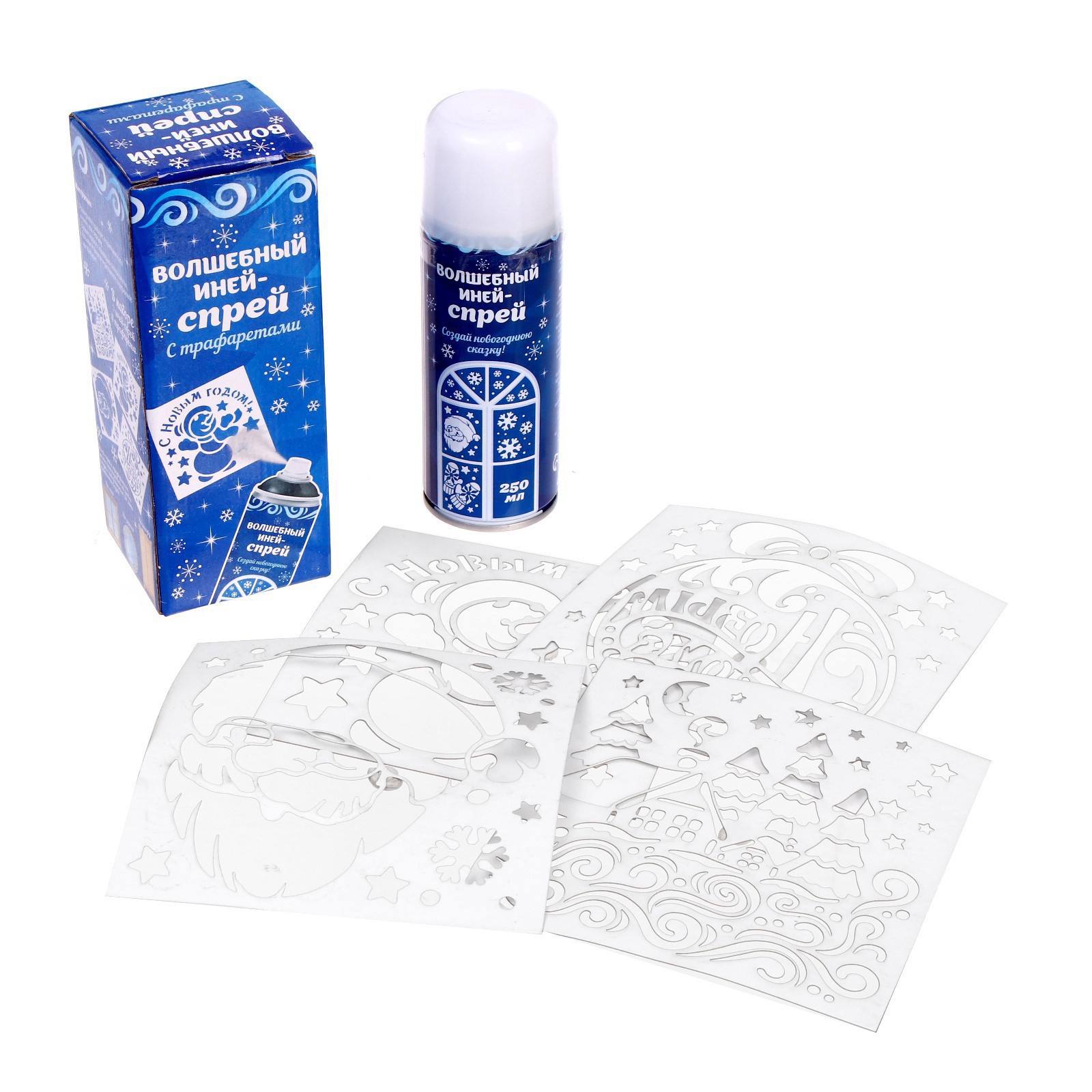 Искусственный снег спрей «зимняя сказка», 4 трафарета, 250 мл, белый