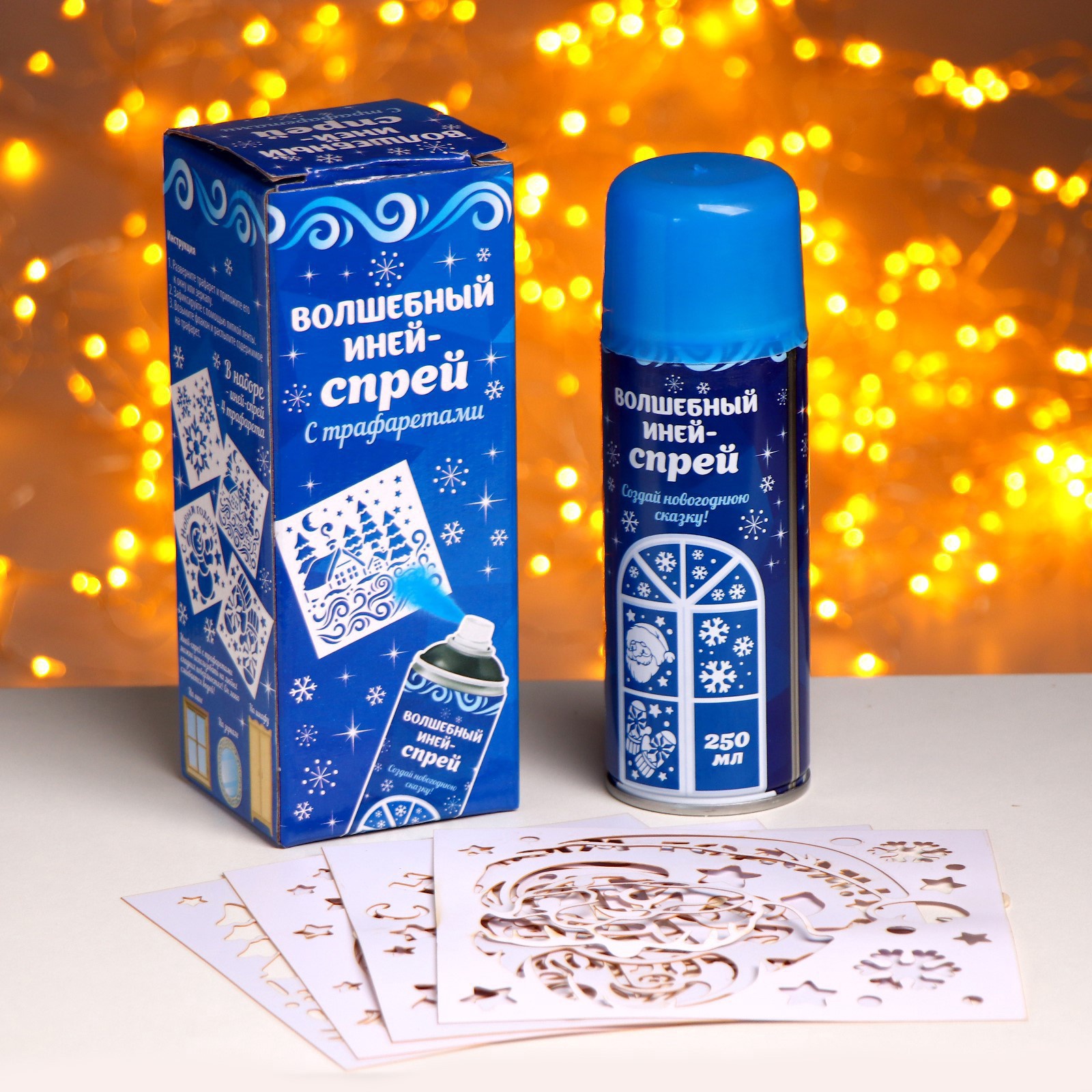 Искусственный снег спрей «с новым годом!», с трафаретами, голубой