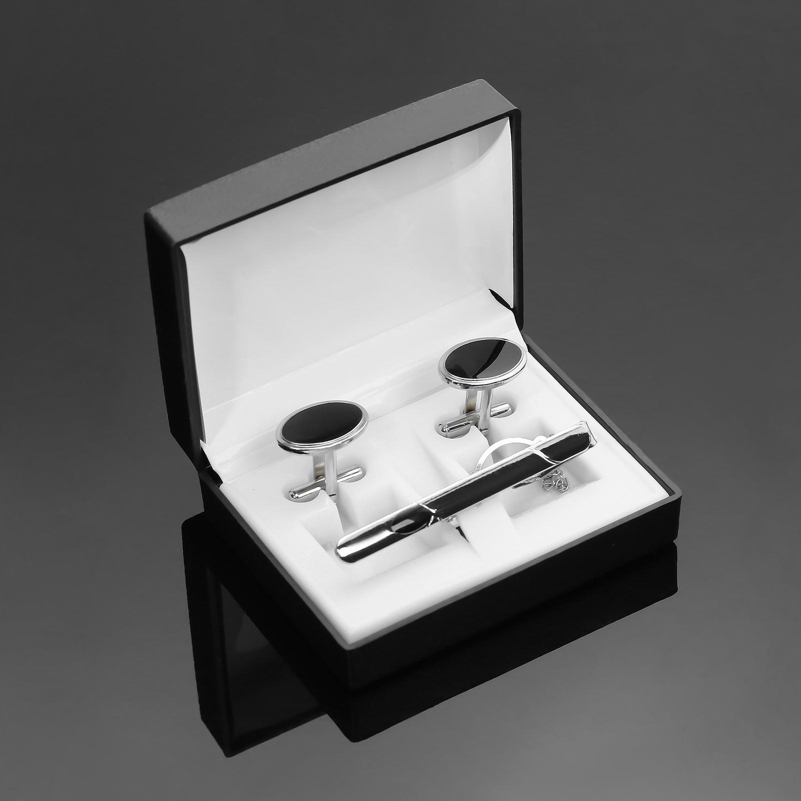 Набор мужской медный «запонки + зажим для галстука» овал с эмалью, чёрный в серебре