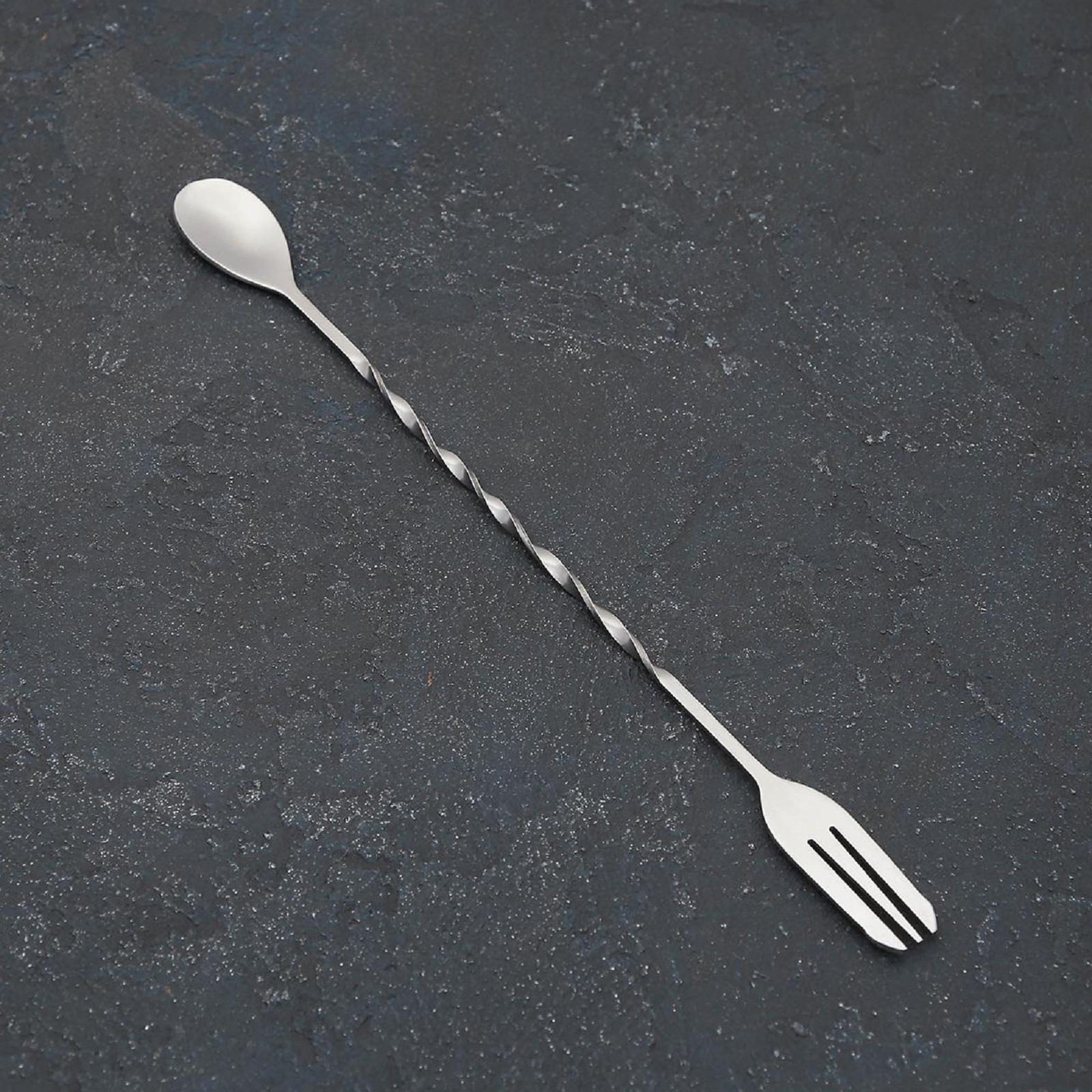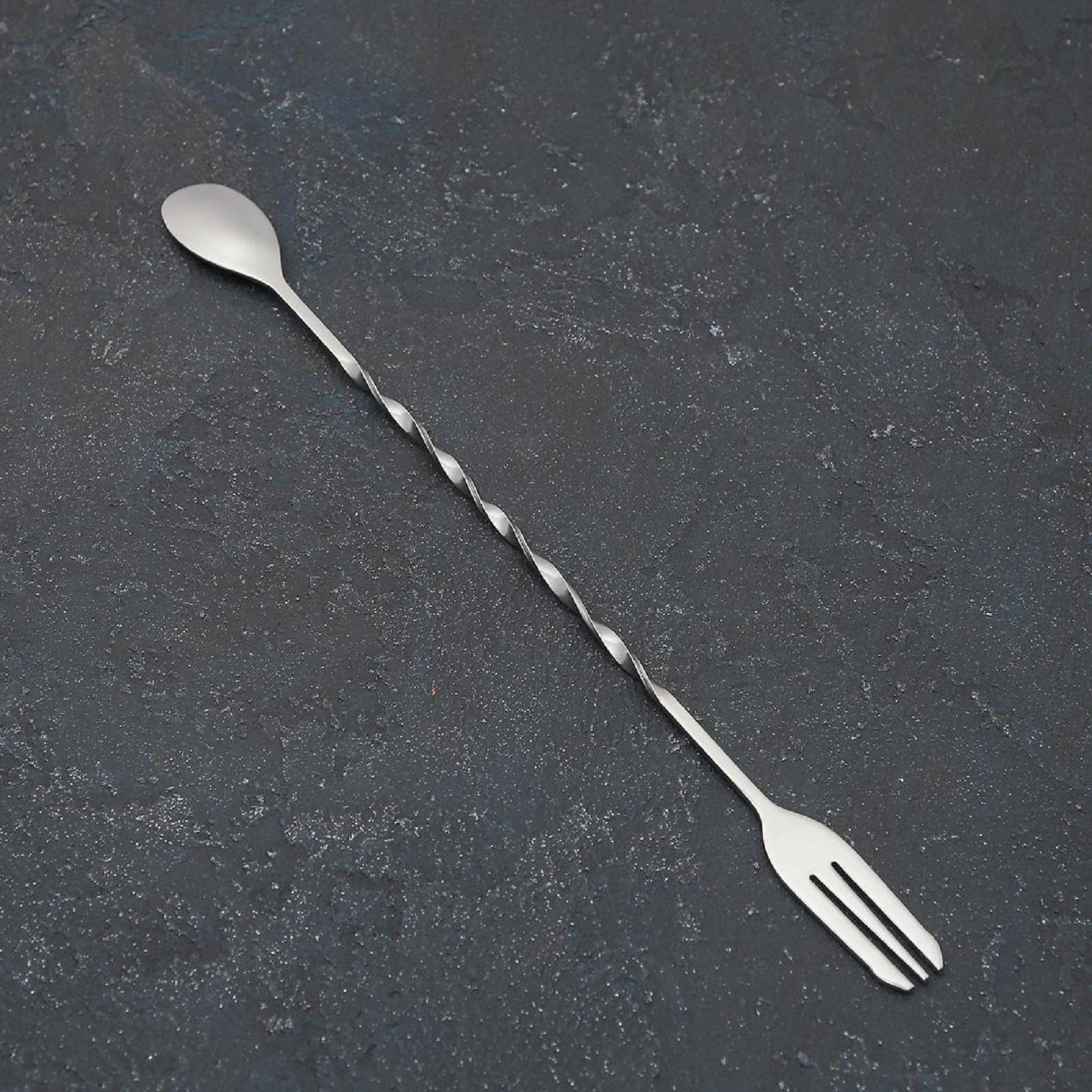 Ложка барная из нержавеющей стали с вилкой, длина 32,5 см, цвет серебряный