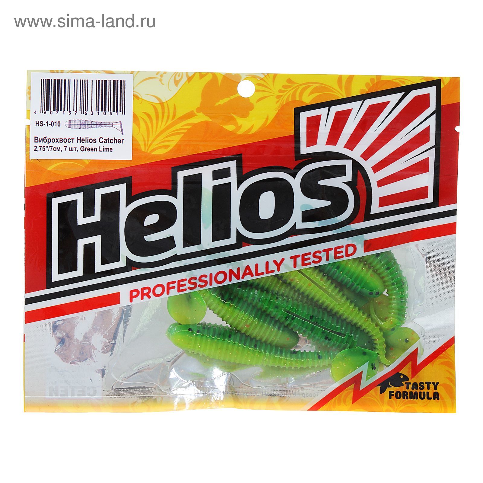 Виброхвост Helios Catcher Green Lime, 7 см, 7 шт. (hs-1-010)