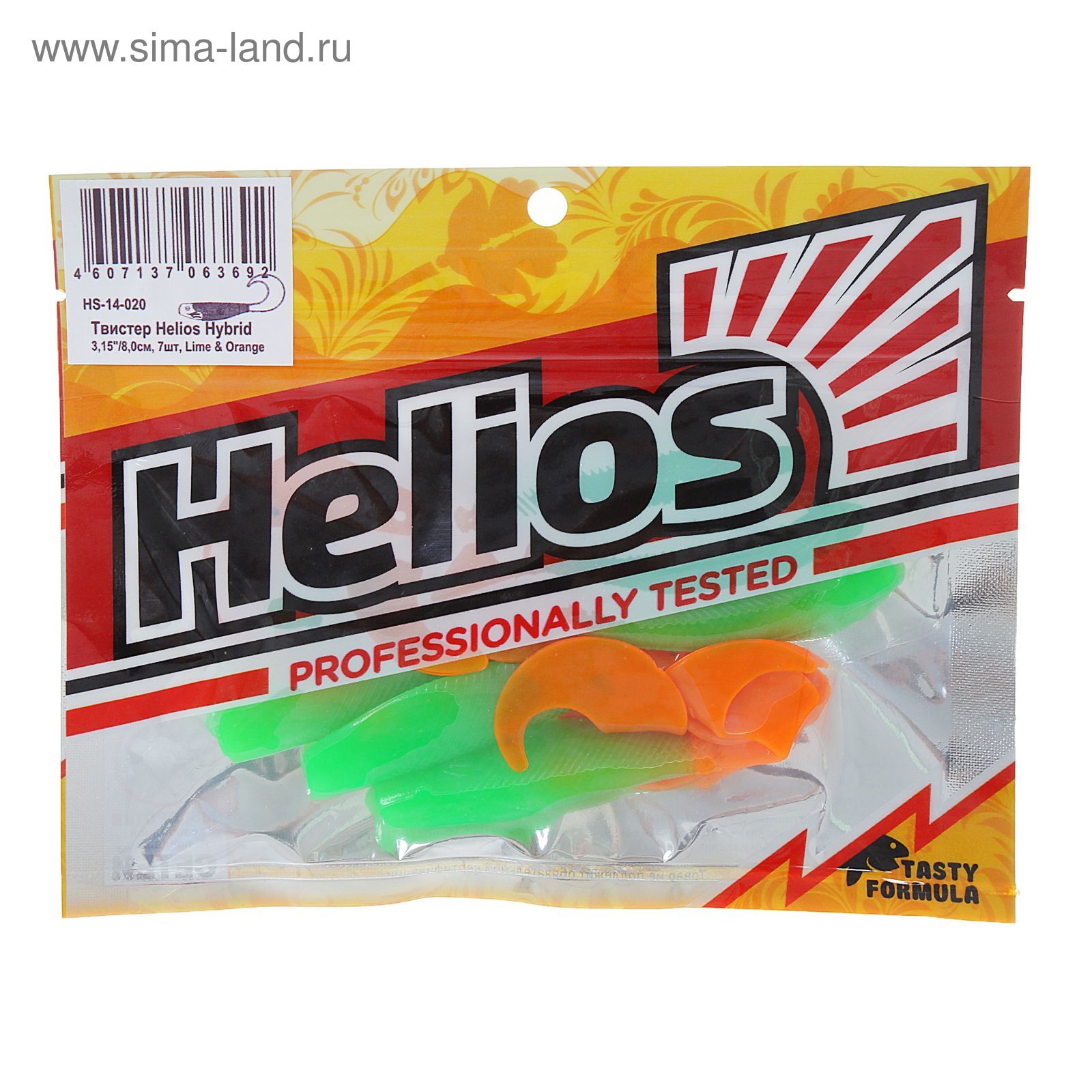 Твистер Helios Hybrid Lime & Orange, 8 см, 7 шт. (hs-14-020)