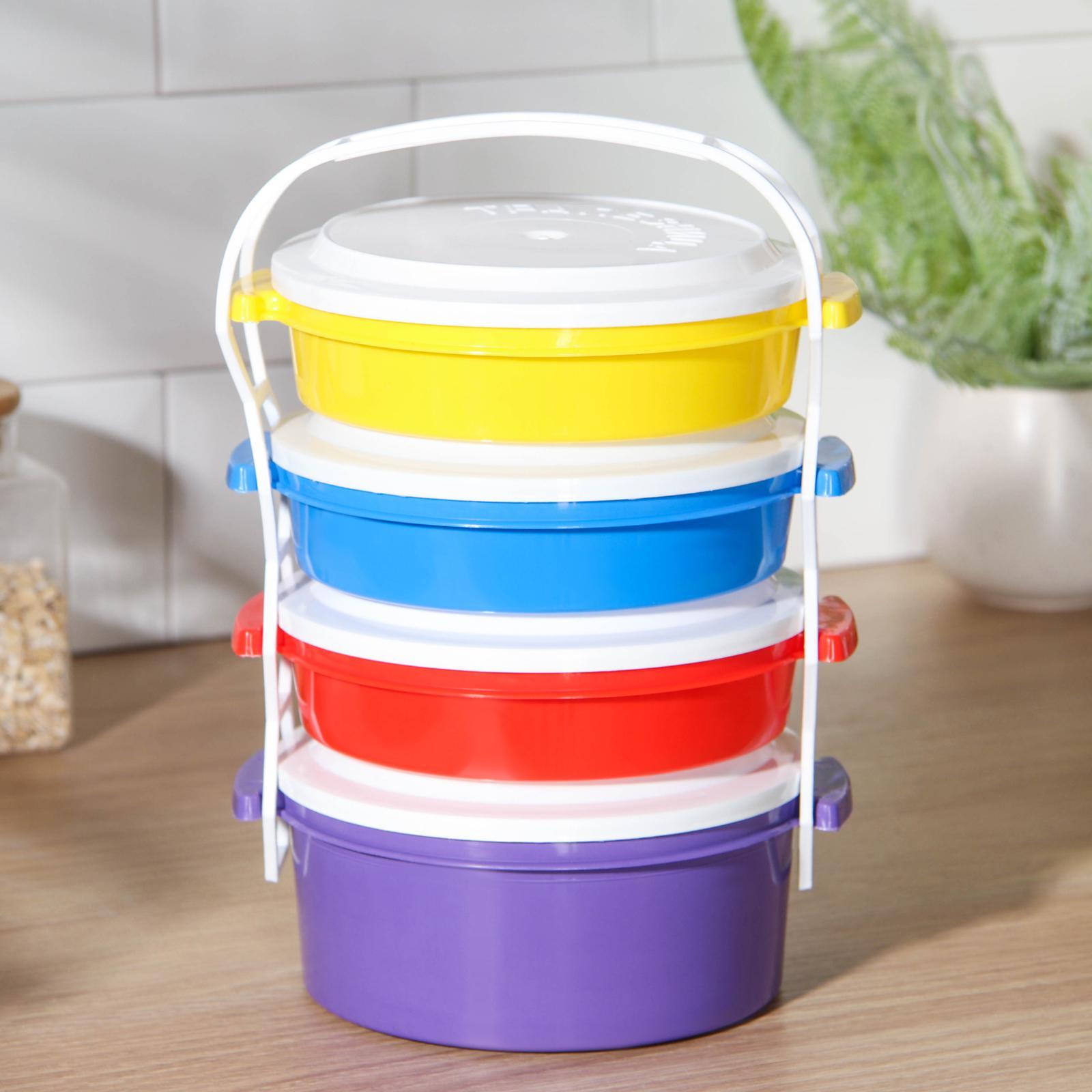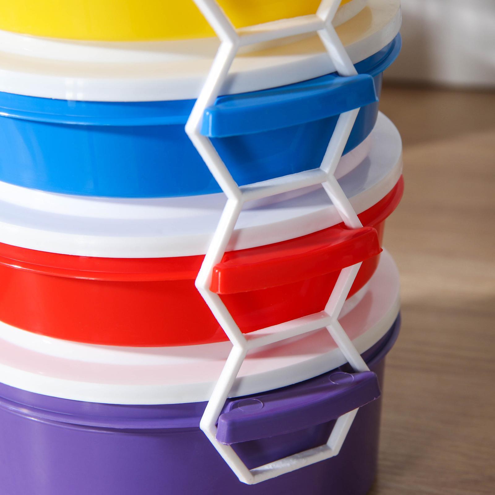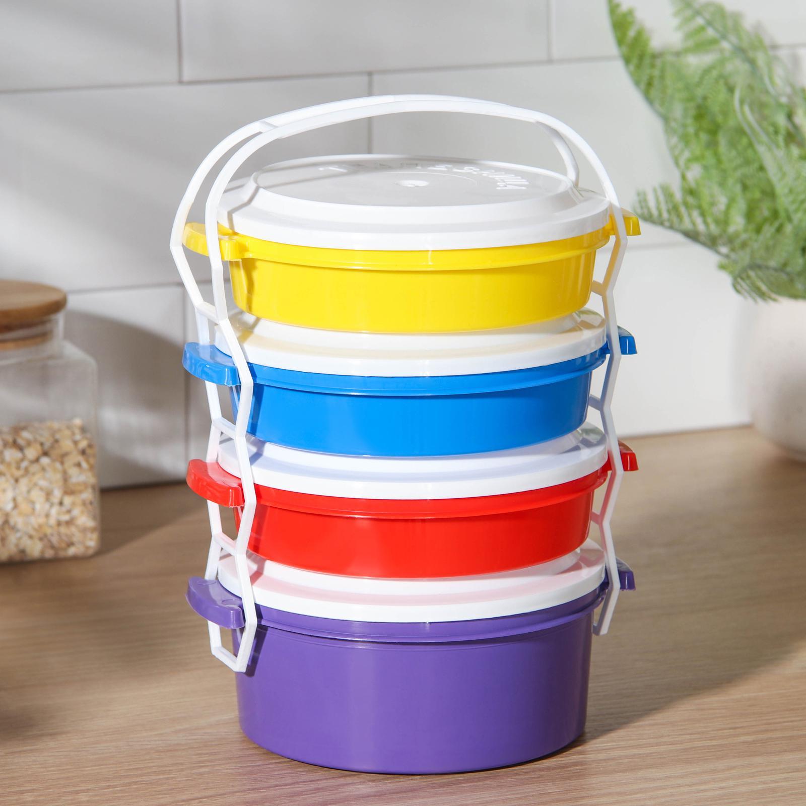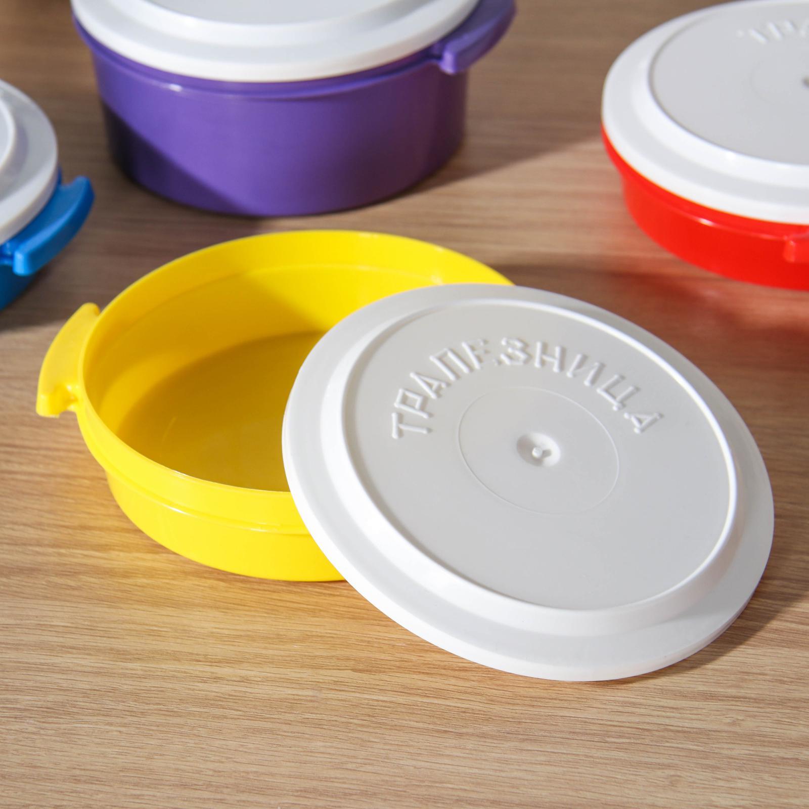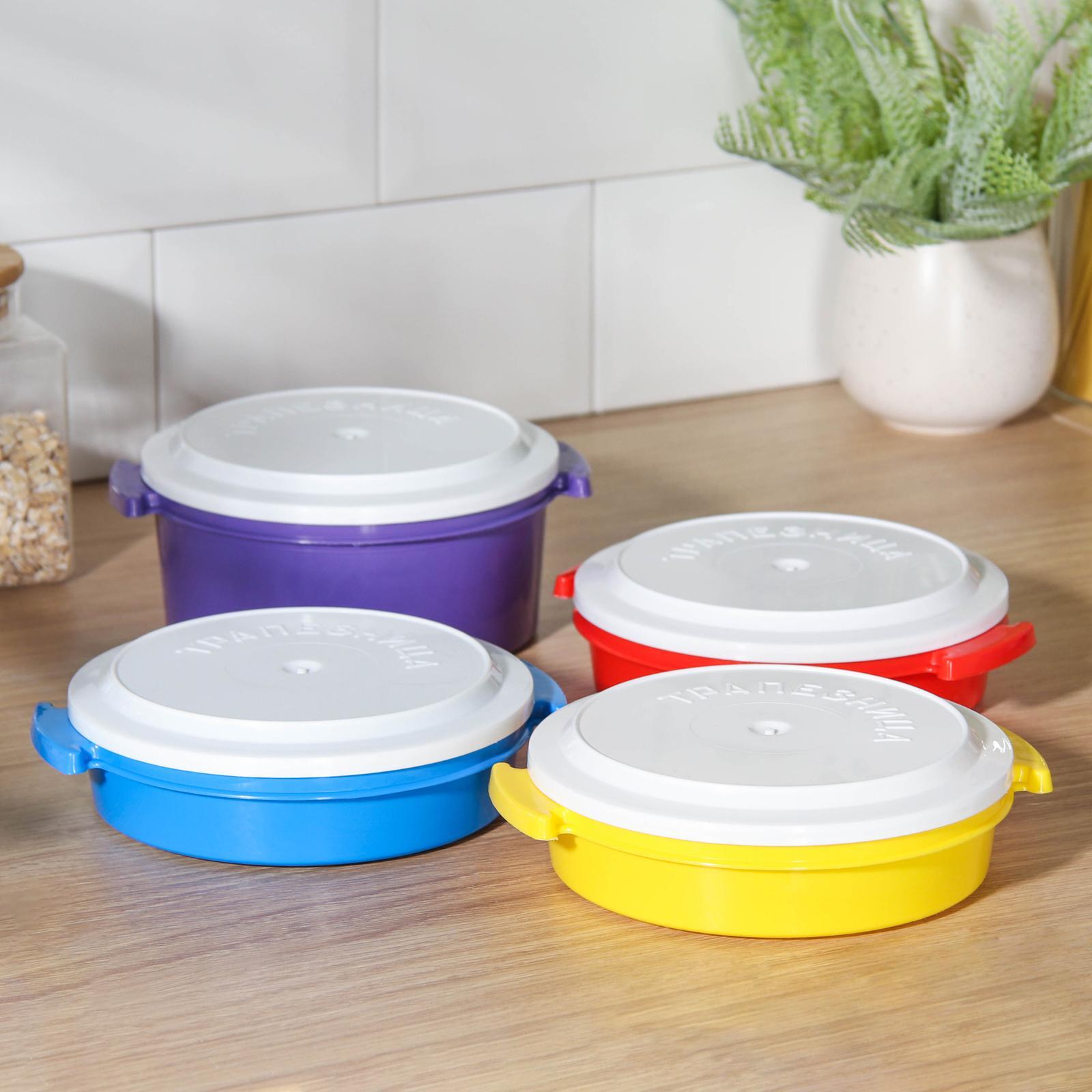 Набор контейнеров пластос «трапезница», 4 шт: 3 шт - 600 мл, 1 шт - 1 л, цвет микс. Пищевые контейнеры - это пластиковые емкости, которые используются для хранения и транспортировки продуктов питания. Они имеют ряд преимуществ: такими как легкость, прочность и устойчивость к повреждениям. Преимущества:Прочность и долговечность;Безопасность;Легкость и удобство;Эстетичность;Экономичность. Цвет: МИКС Форма: Круглая В наборе, шт.: 4 Объём, мл: 600 Объём, мл: 1000 Крышка: Да Материал: Пластик Герметичная крышка: Нет Можно использовать в СВЧ-печи: Да Форма: Круг, шар, цилиндр  развернуть описание ▼