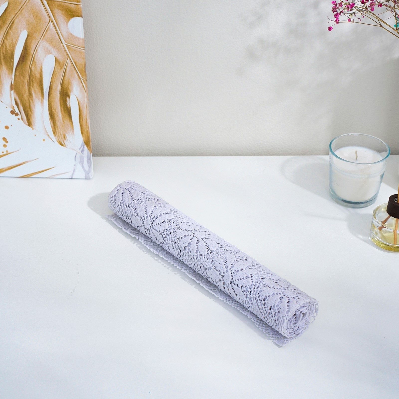 Коврик противоскользящий доляна «цветы», 30x100 см, цвет белый. Противоскользящий коврик предназначен для защиты поверхности стола от воздействия влаги, горячих предметов, загрязнений, порезов, царапин, сколов и других механических и химических повреждений. Преимущества: Надёжно удерживает любые предметы на скользких, вибрирующих или наклонных поверхностях. Может быть использован в качестве подставки под горячую или холодную столовую посуду. Легко очищается, защищает поверхность от царапин, не линяет и сохраняет форму. Обладает высокой степенью прочности, гибкостью. Применение: Он пригодится везде: дома и на даче, в машине и даже во время выездов на природу. Цвет: Белый Форма: Прямоугольная Размер, см: 30 х 100 Материал: ПВХ  развернуть описание ▼
