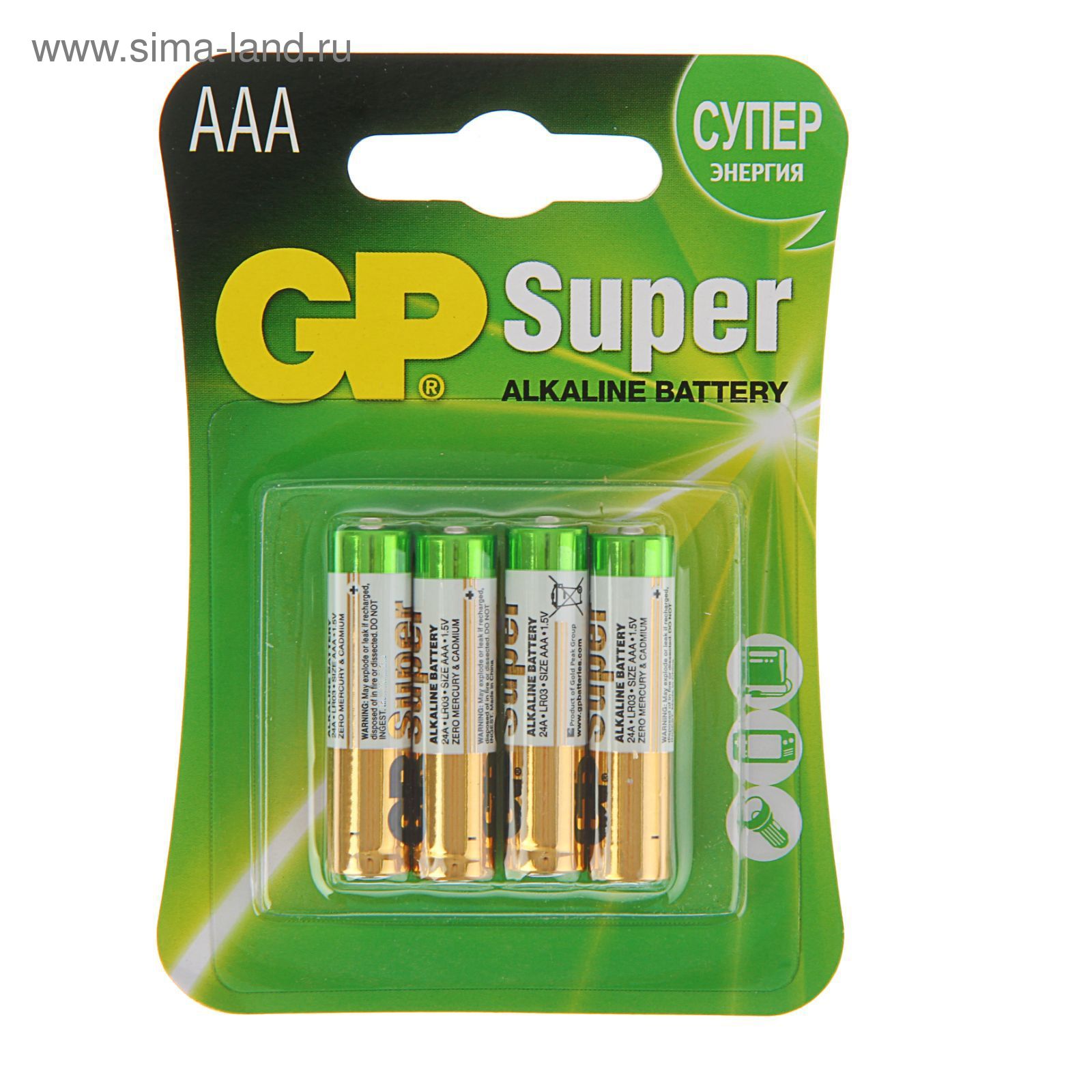 Батарейка алкалиновая Gp Super, Aaa, Lr03-4bl, 1.5в, блистер, 4 шт.