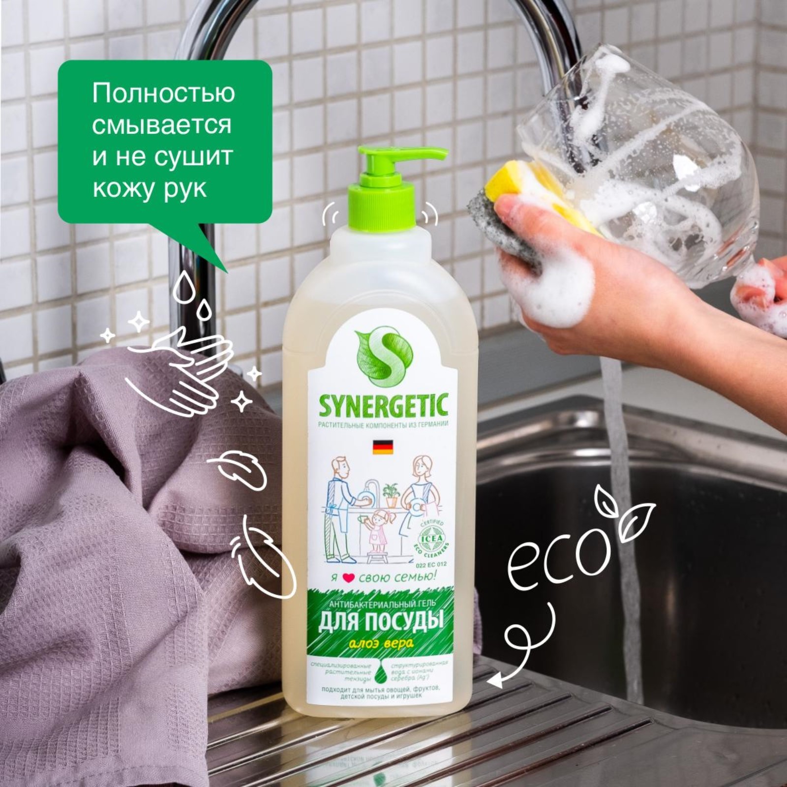 Средство для мытья посуды Synergetic "алоэ вера", с антибактериальным эффектом, 1 л