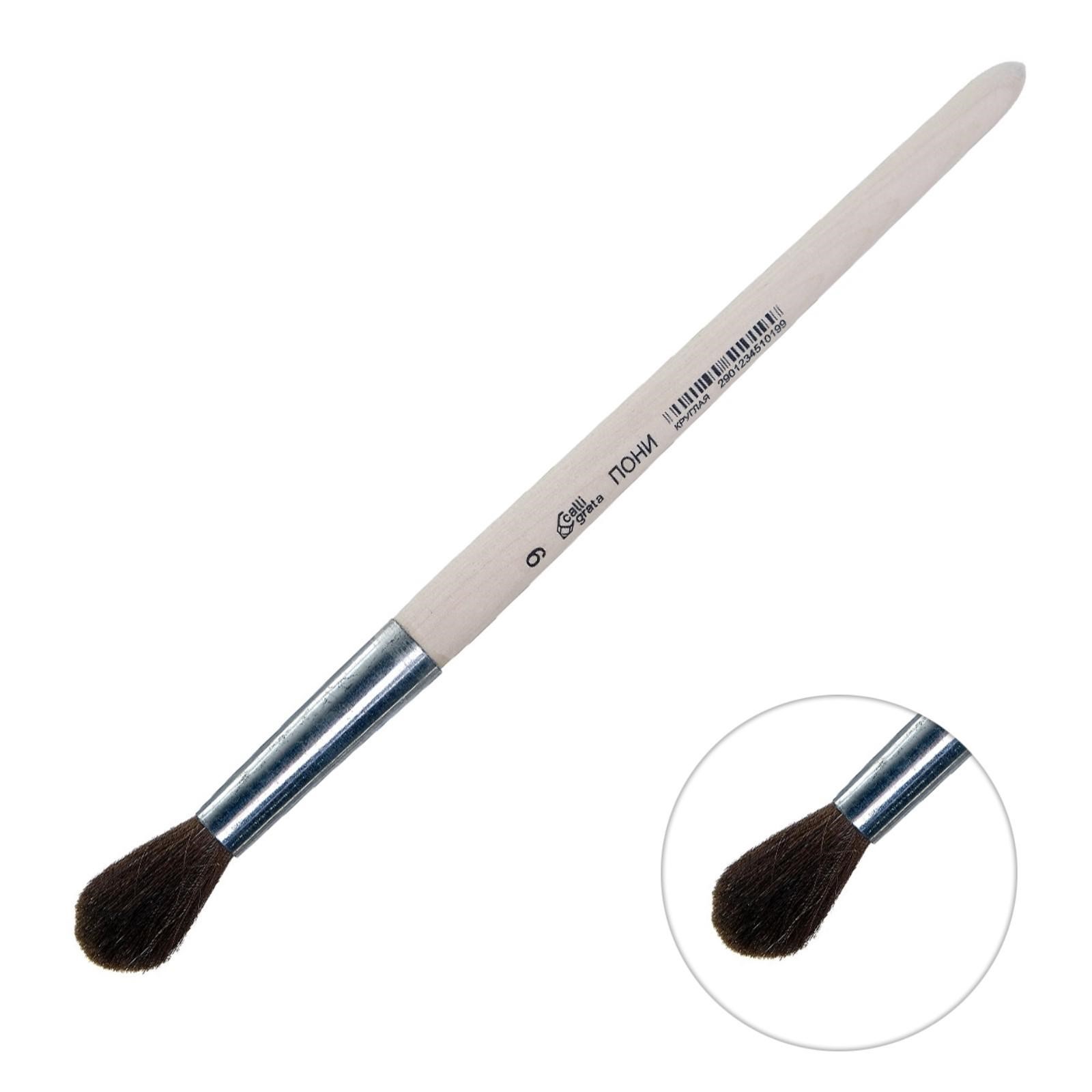 Кисть для рисования, пони круглая № 9 (диаметр обоймы 9 мм; длина волоса 28 мм), деревянная ручка, Calligrata