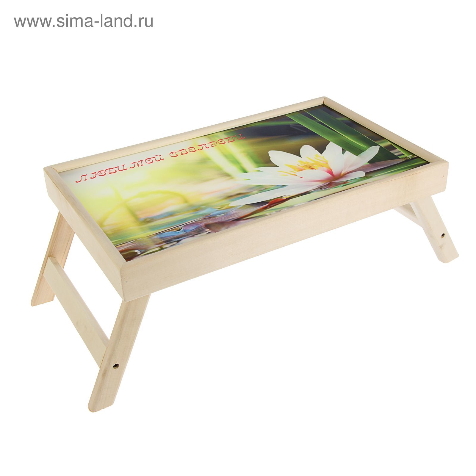 Столик-поднос "цветок на воде", стеклянная поверхность 50х30см