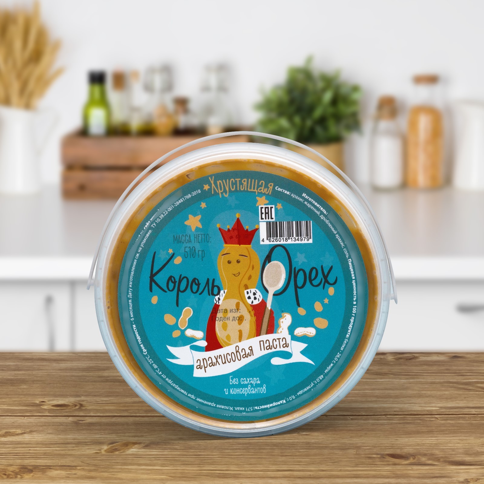 Арахисовая паста «король орех» хрустящая, 510 г. Эта паста из исключительно натуральных ингредиентов, идеальный десерт для всех, кто придерживается здорового образа жизни. С ней завтрак станет не только вкусным, но и действительно полезным. Состав: арахис жареный, арахис дроблёный, соль. Белки: 26 Жиры: 48 Углеводы: 9 Калорийность: 571 ккал. Срок годности, мес: 6 Углеводы, г: 9 Белки, г: 26 Жиры, г: 48 Вес нетто, г: 510 Энергетическая ценность, ккал: 571 Вид упаковки: Пластиковая банка Вид: Арахисовая паста Температурное ограничение: Нет Продукты: Да  развернуть описание ▼