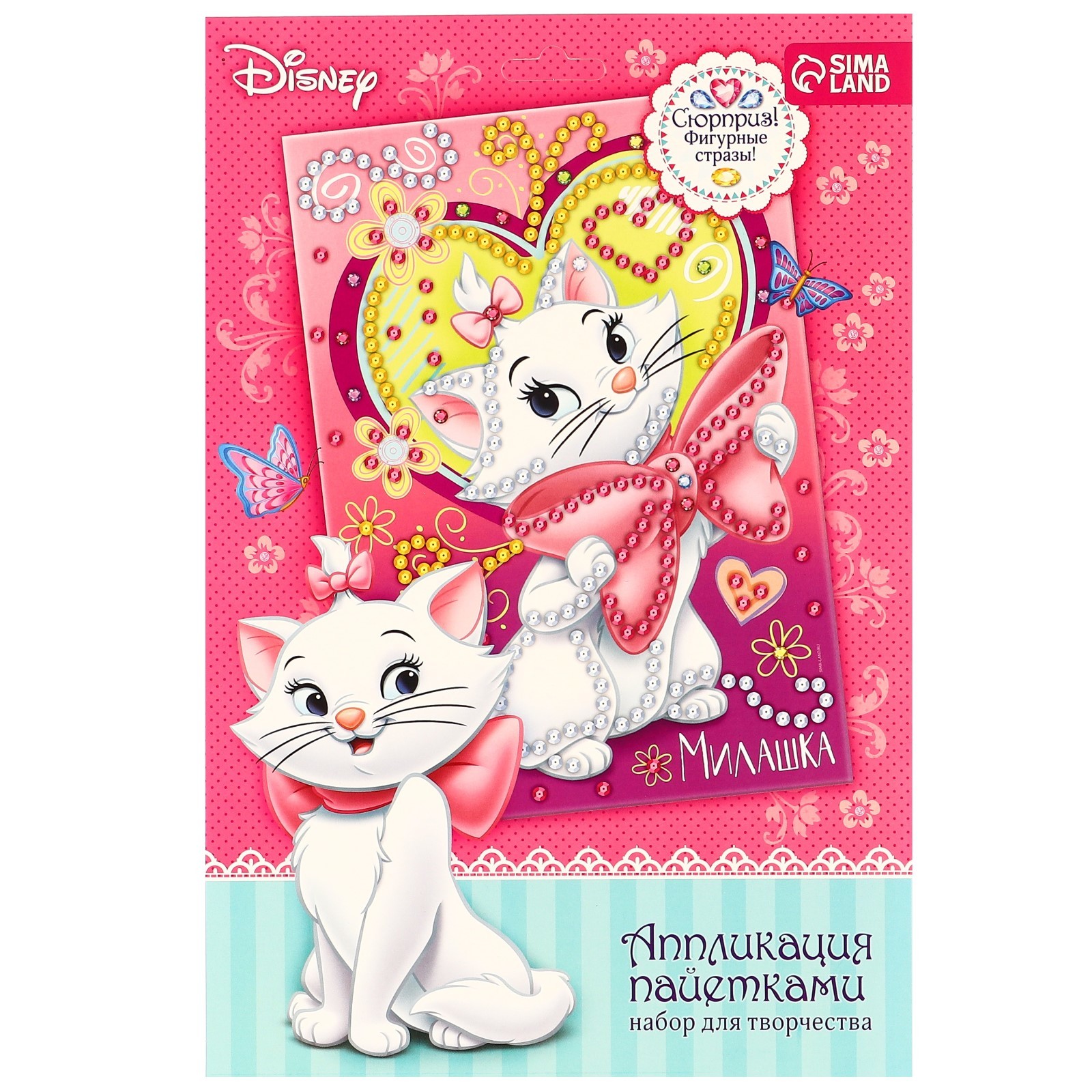 Аппликация стразами и пайетками «милашка», кошечка мари, а4