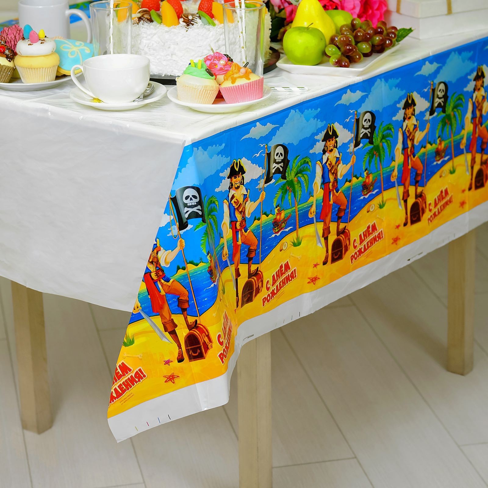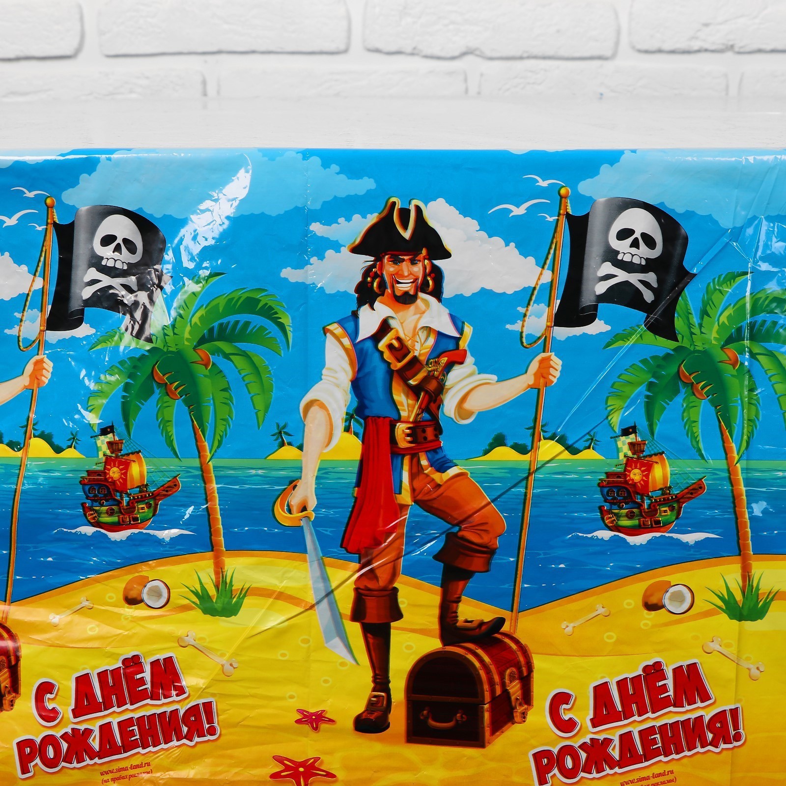 Скатерть одноразовая «с днём рождения», пират, 180х137 см