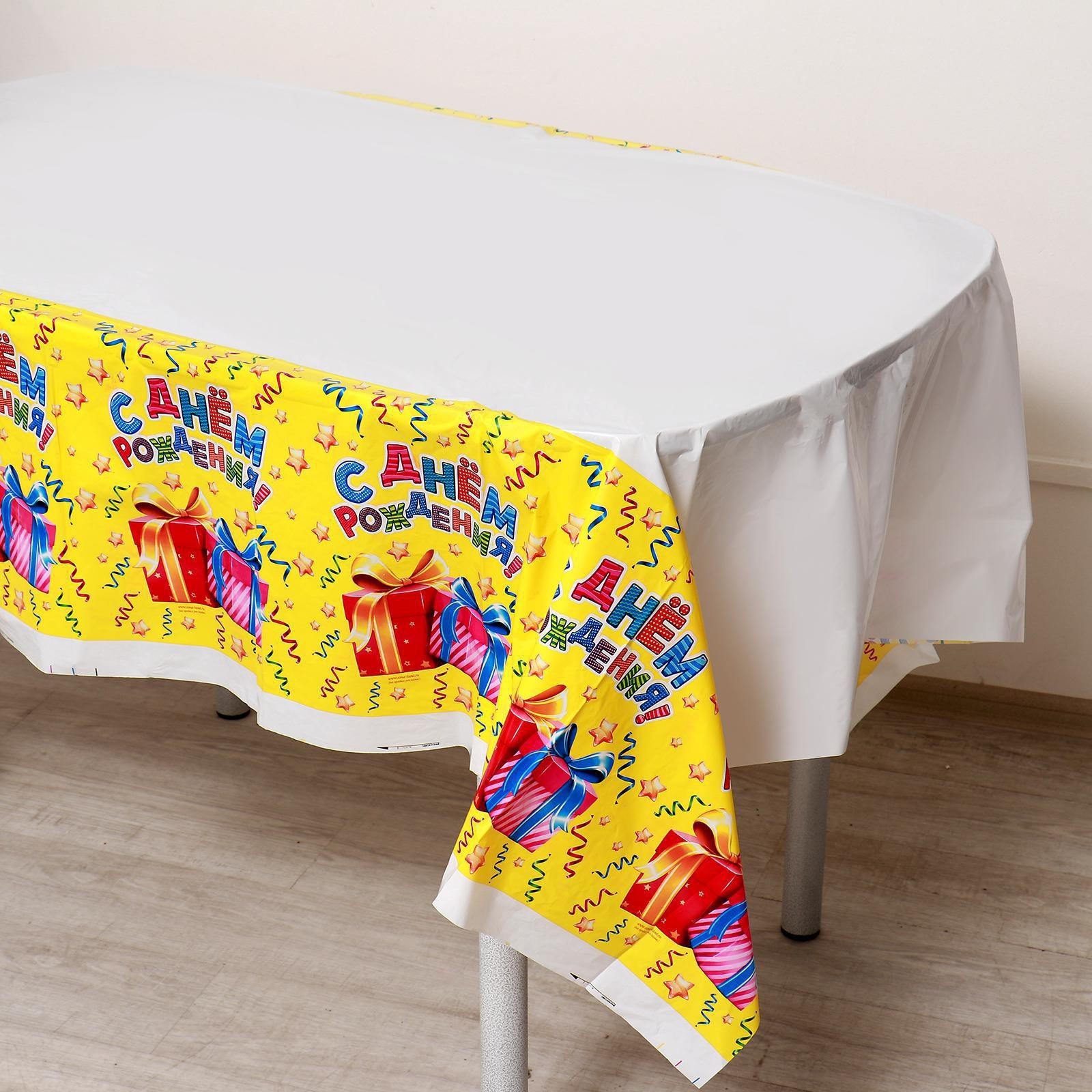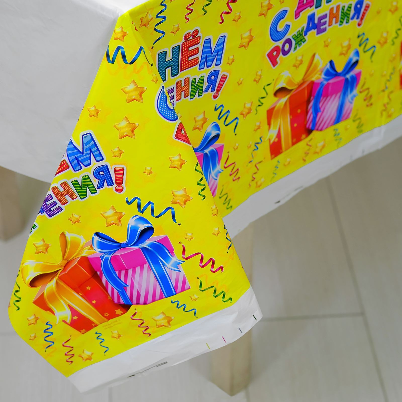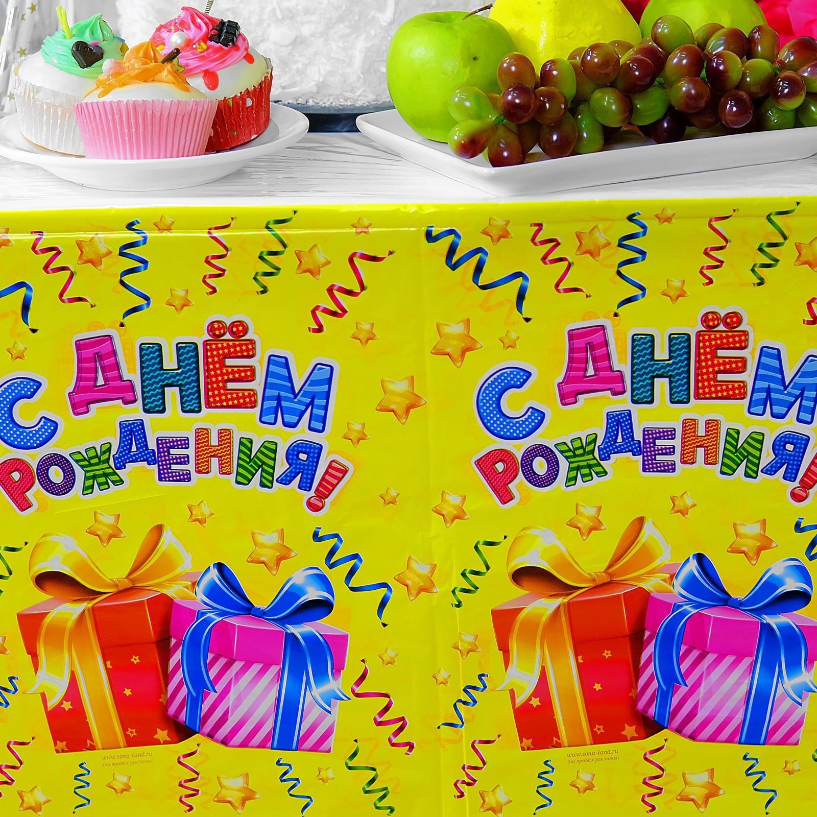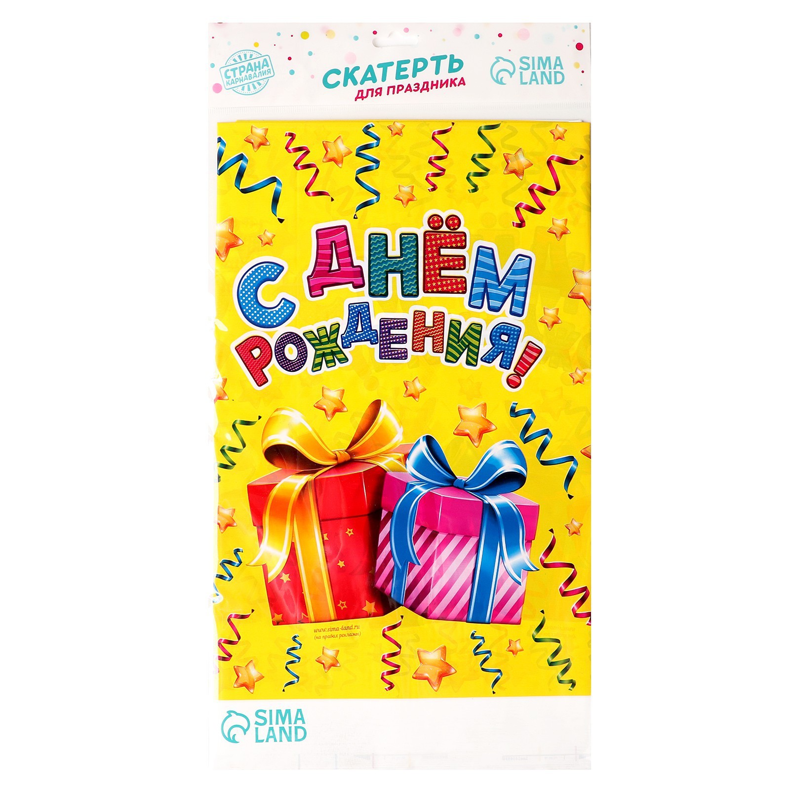 Скатерть одноразовая «с днём рождения», подарки, 180х137 см