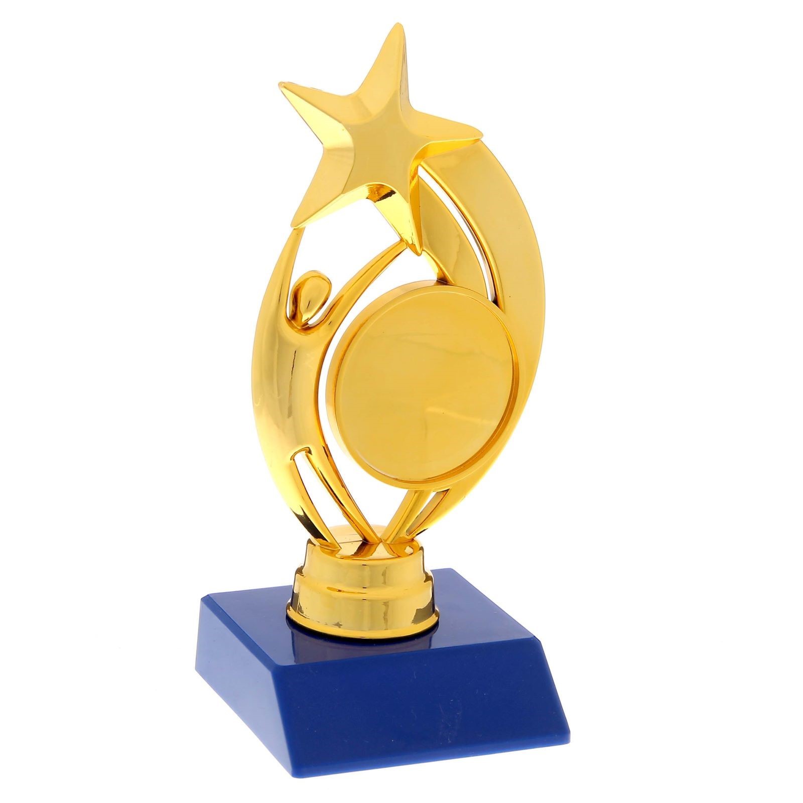 Наградная фигура «звезда с человеком», подставка пластик синяя, 15 х 6,3 х 6,3 см.