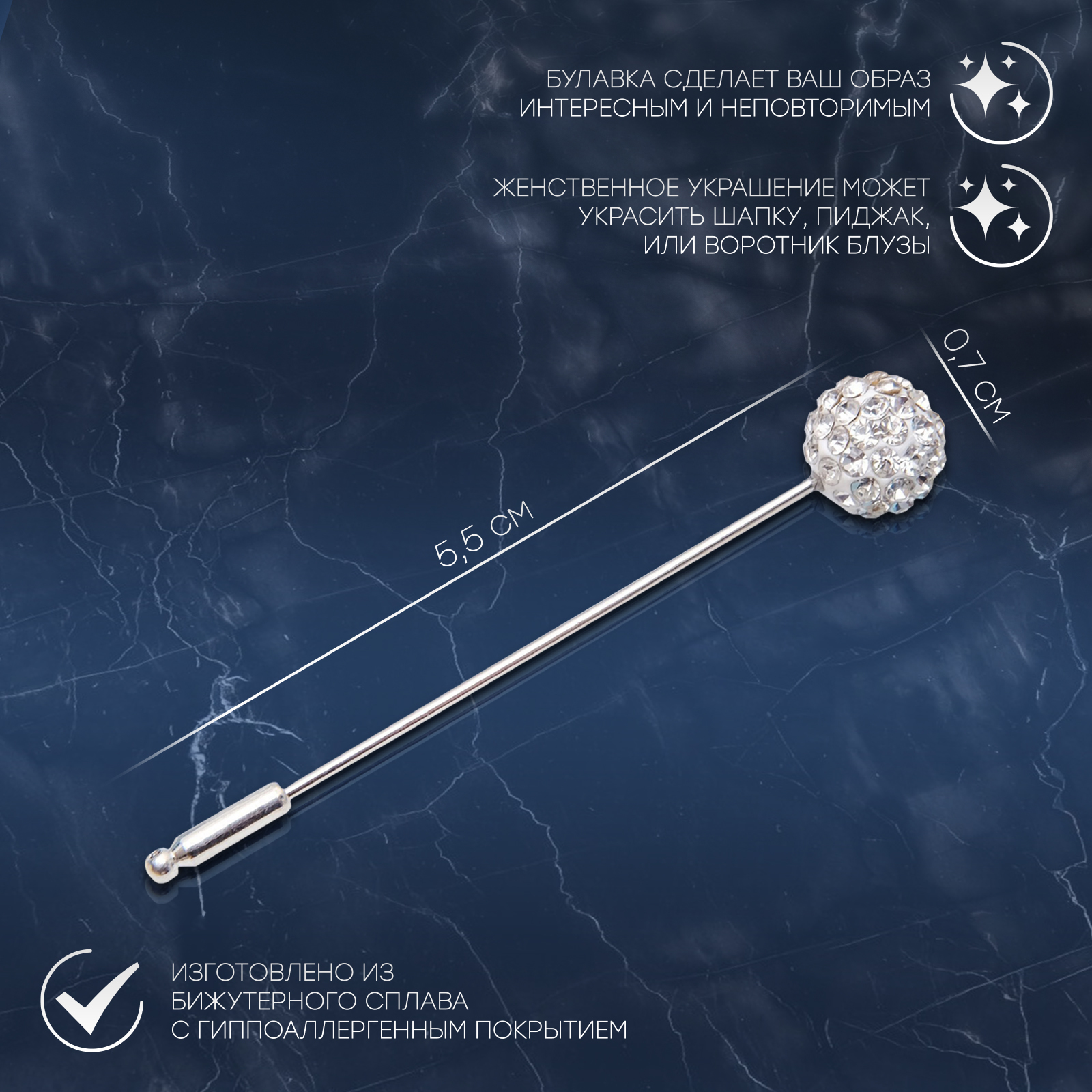 Булавка «шамбала» классика, 5.5 см, белая в серебре