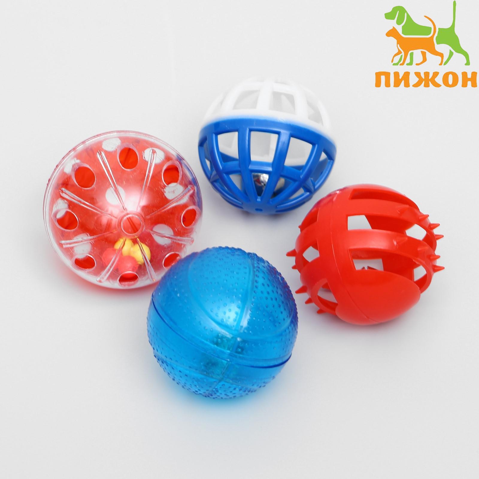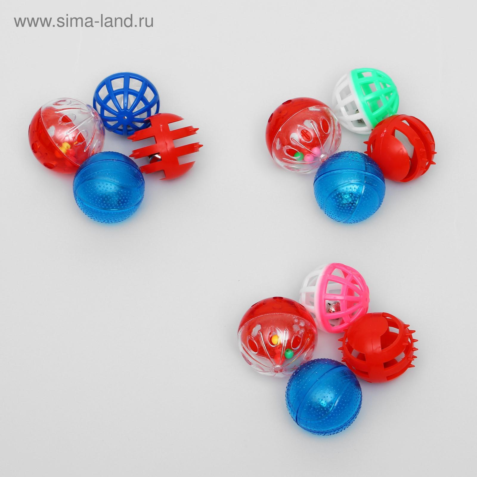 Набор шариков для кошек, диаметр каждого 4 см, 4 шт., микс цветов