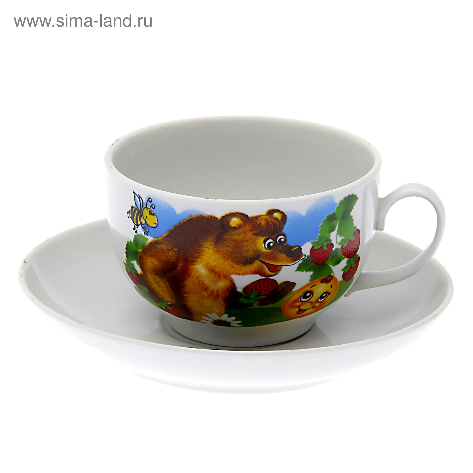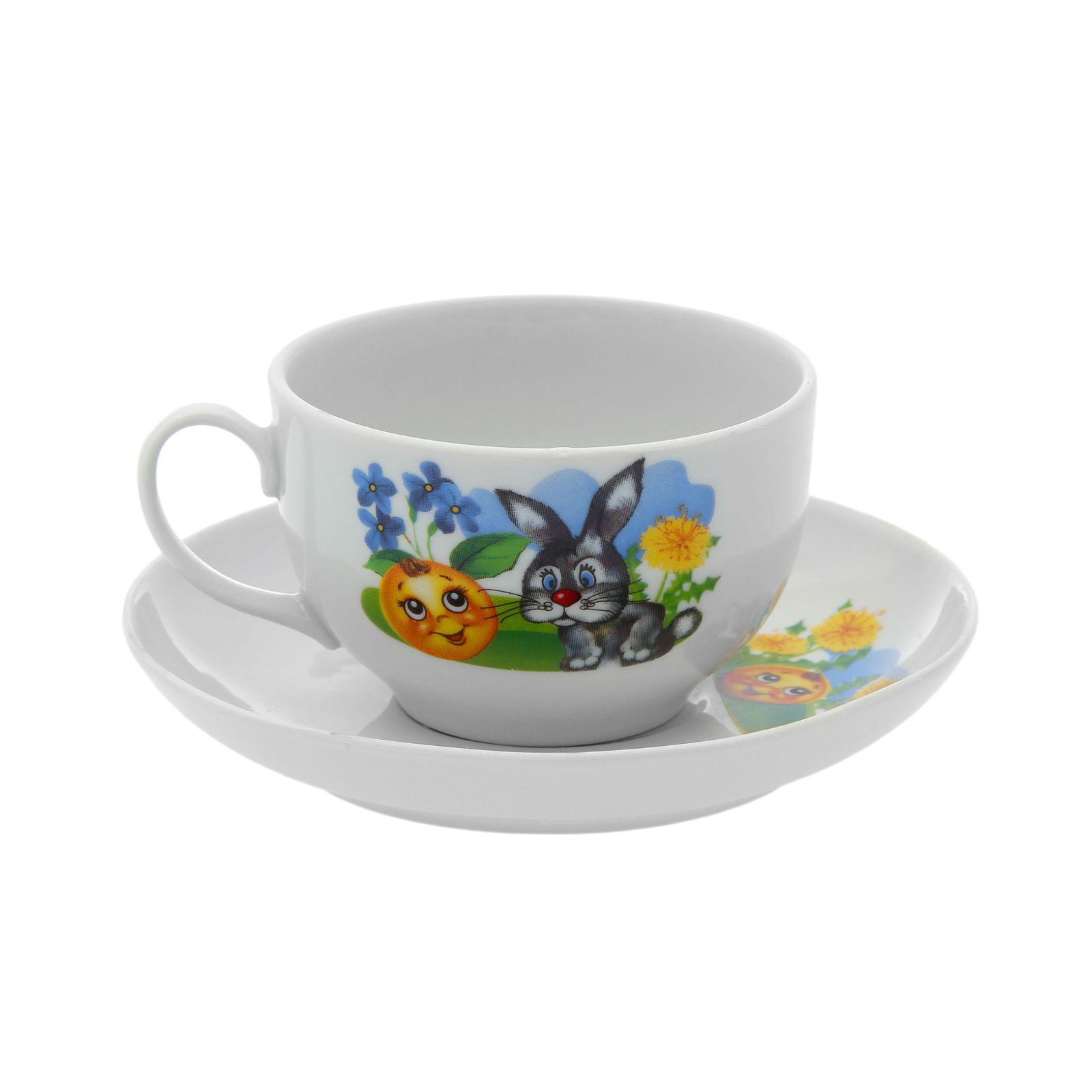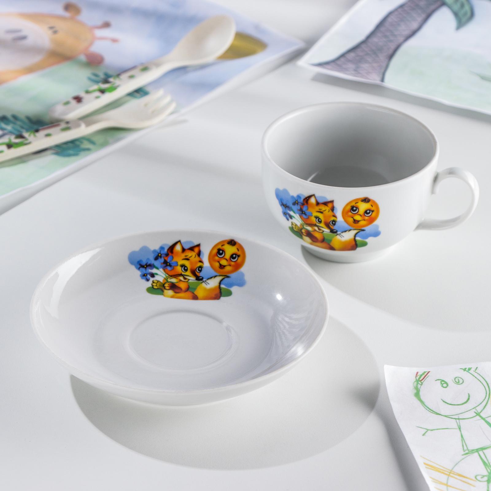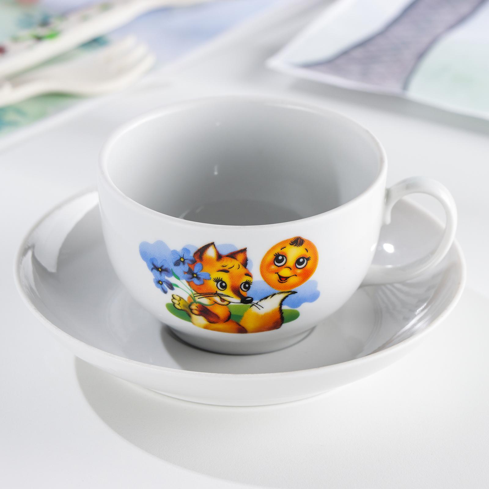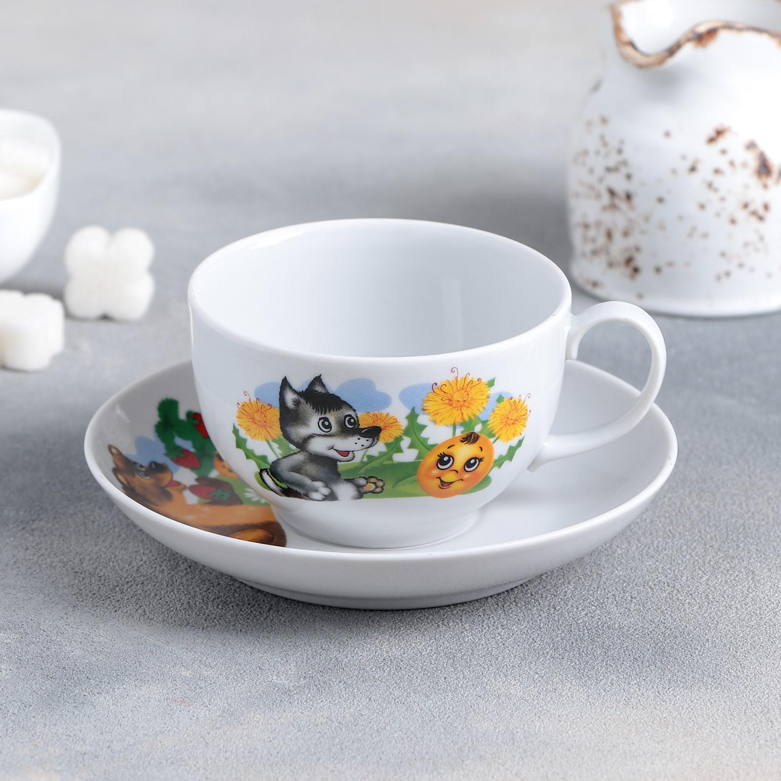 Чайная пара фарфоровая «приключения колобка», 200 мл, чашка D=8,8 см, блюдце D=14 см, рисунок микс