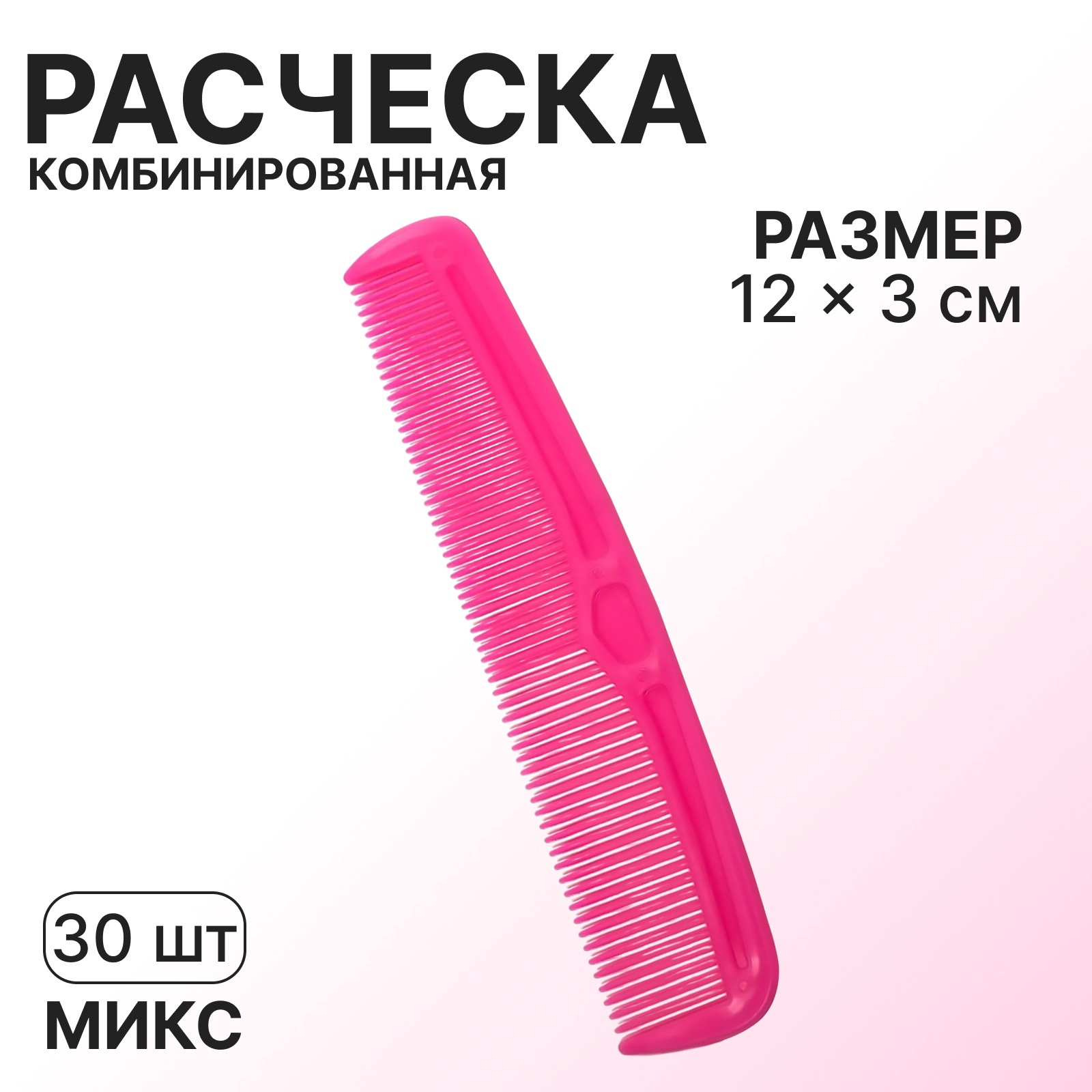 Расчёска комбинированная, 12 3(±1) см, фасовка 30 шт., микс