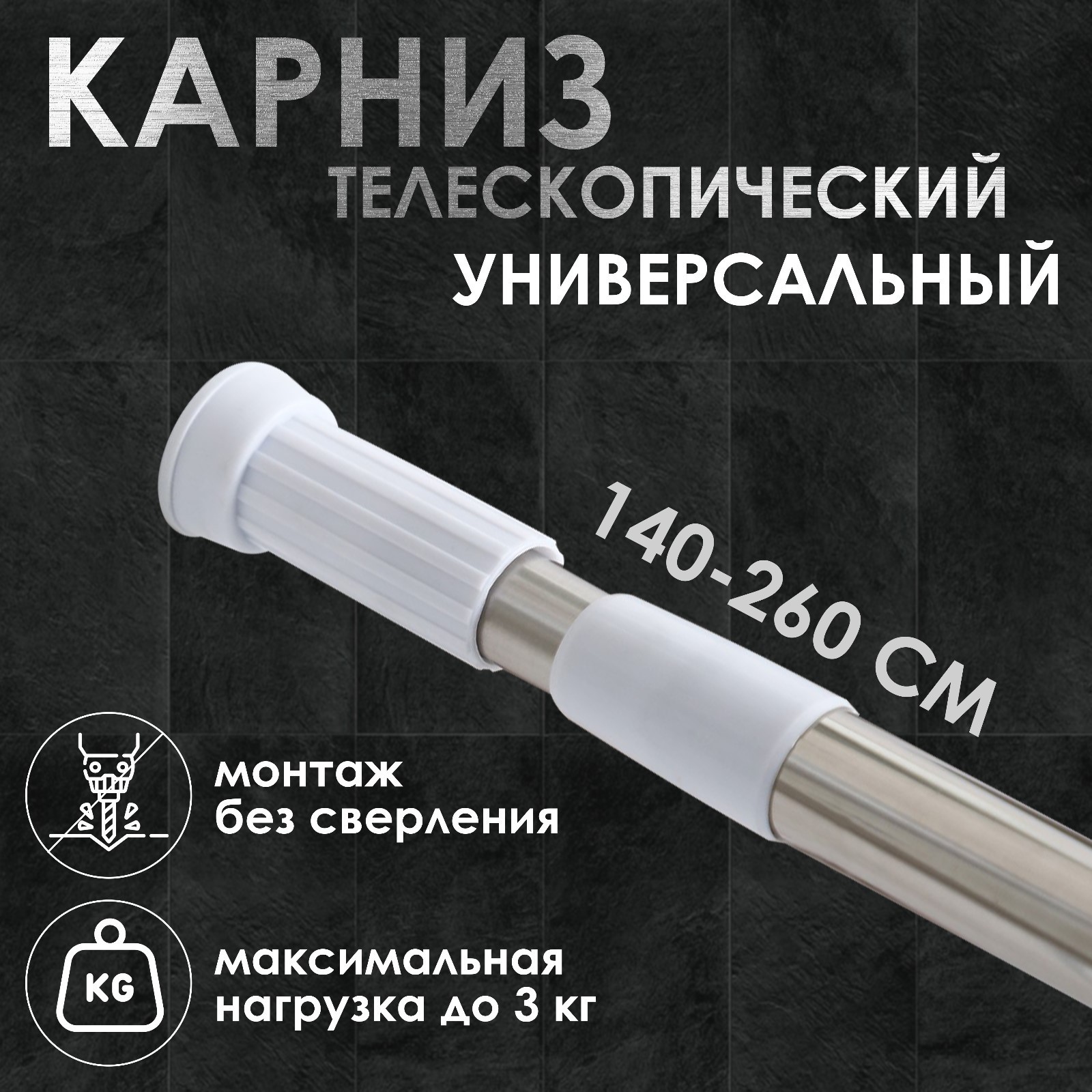 Карниз для ванной комнаты телескопический доляна, 140-260 см, стальной