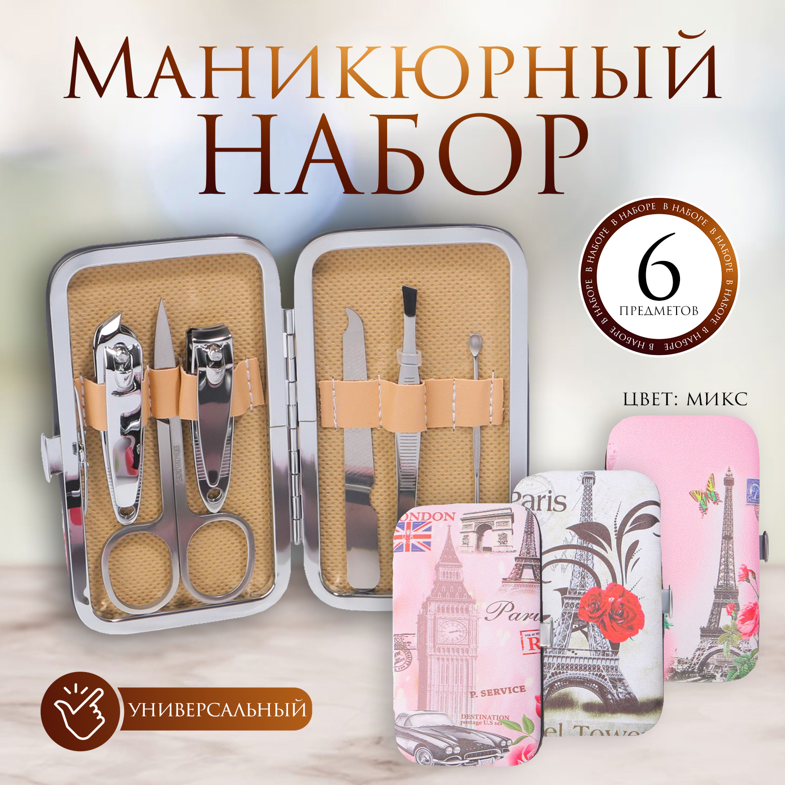 Набор маникюрный «париж», 6 предметов, в футляре, рисунок микс