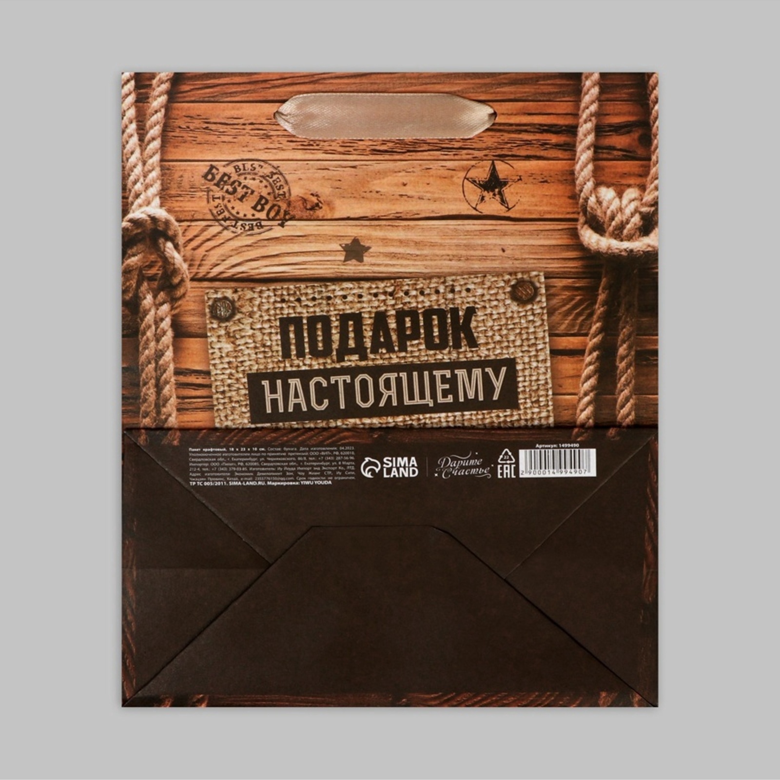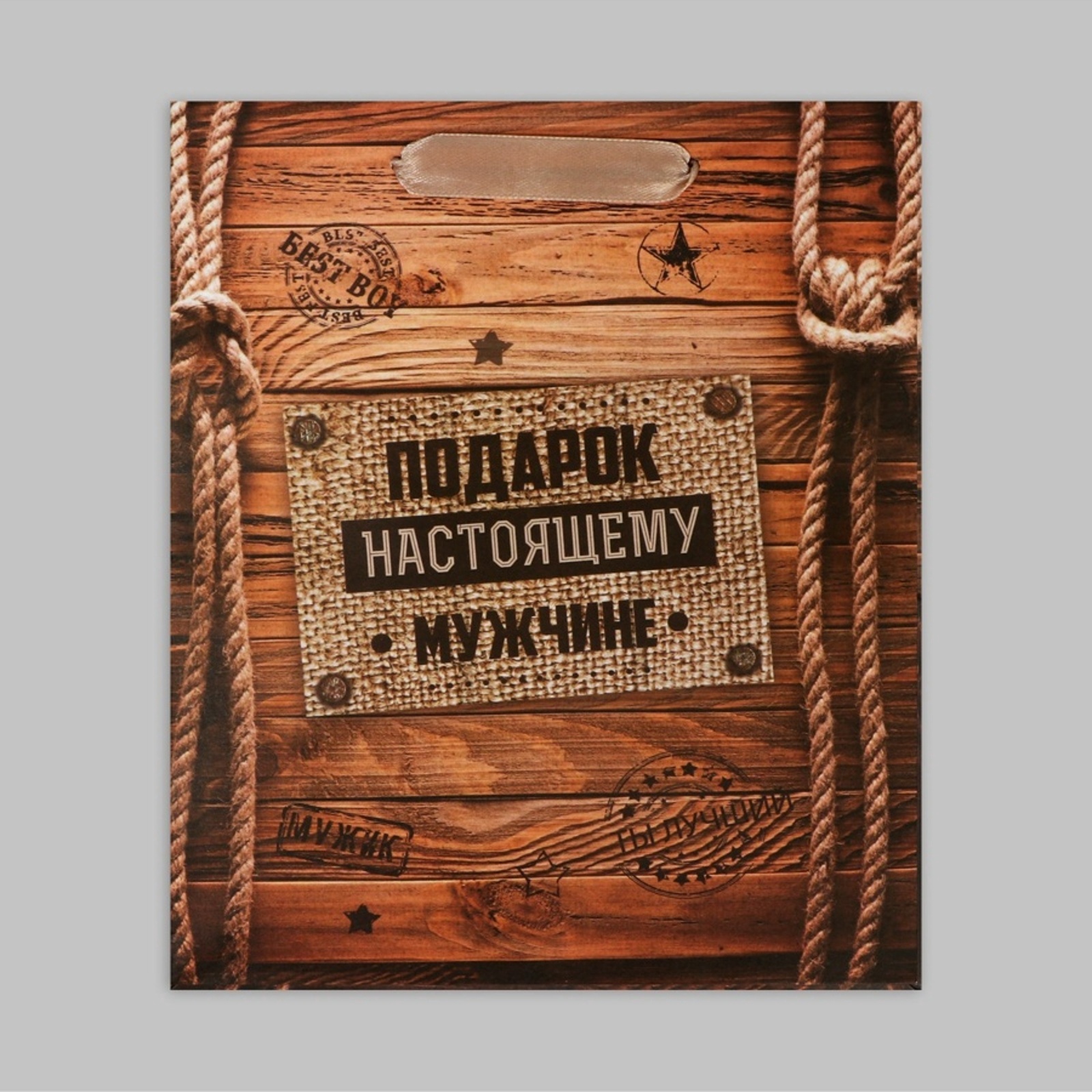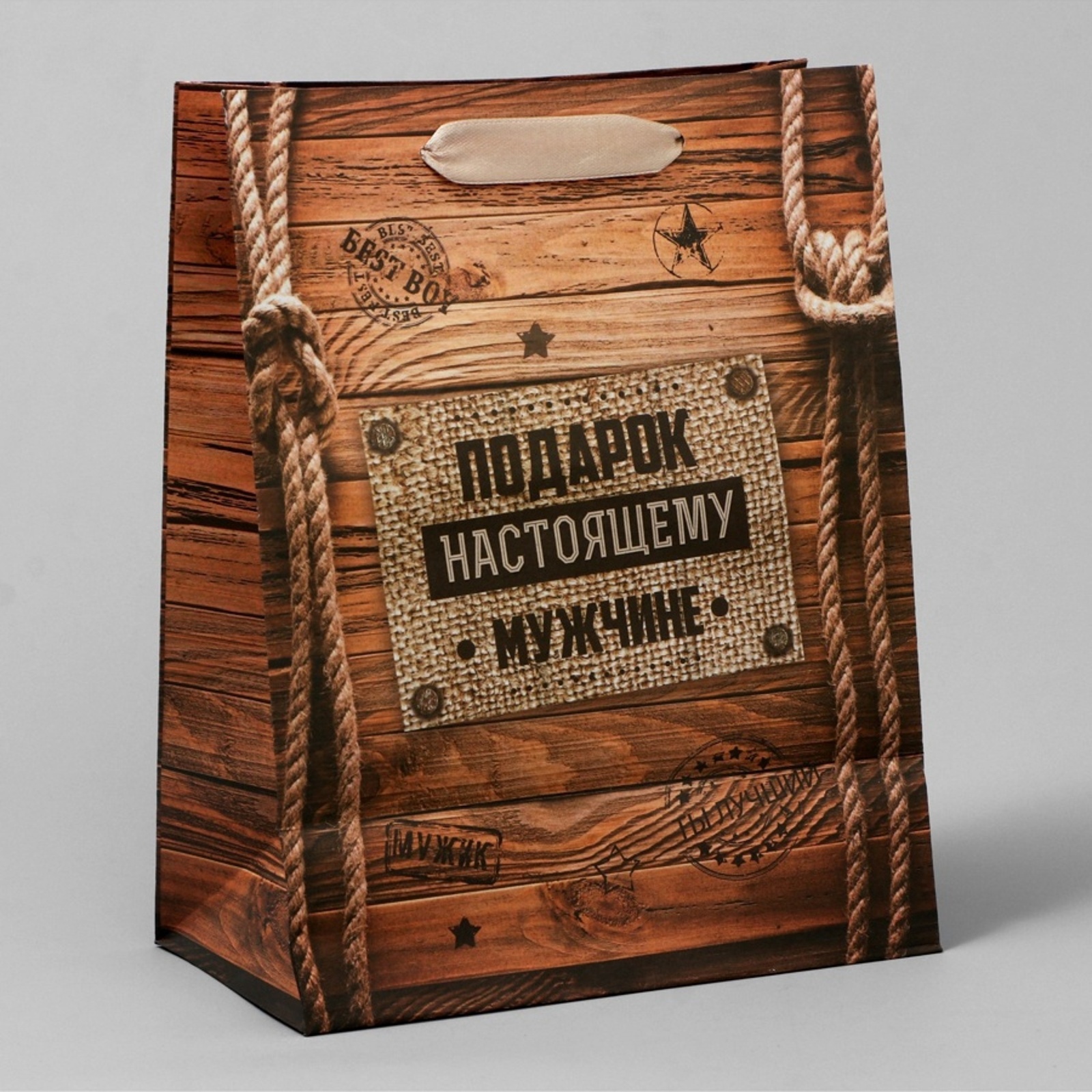 Пакет подарочный крафтовый, упаковка, «подарок настоящему мужчине», 18 х 23 х 8 см