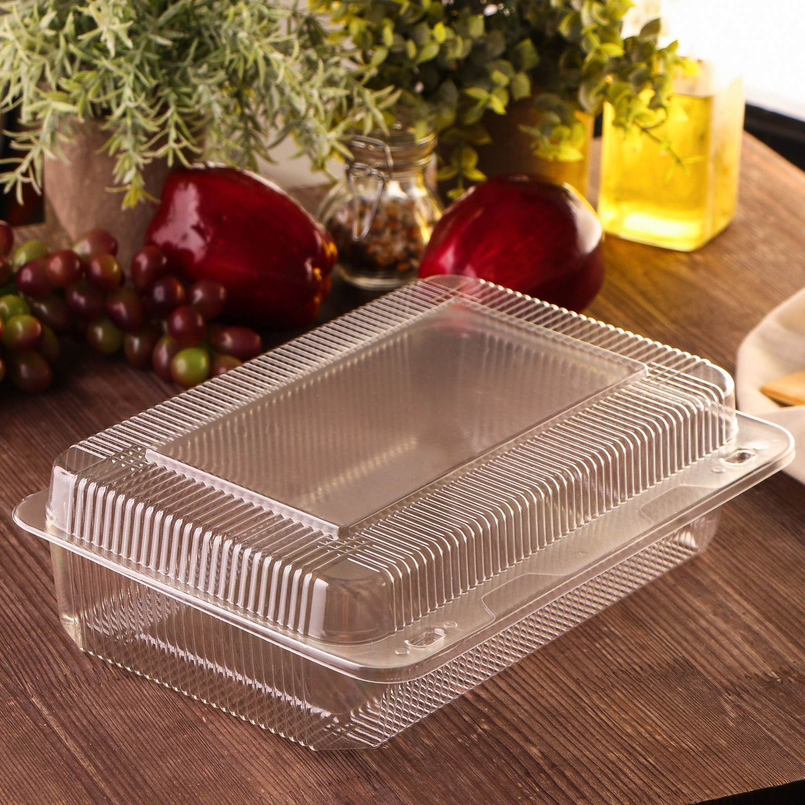 Контейнер пластиковый одноразовый с неразъёмной крышкой ут11/1, 28x20,5x8,2 см, внутренний 25,6x15,6x7,5 см, цвет прозрачный