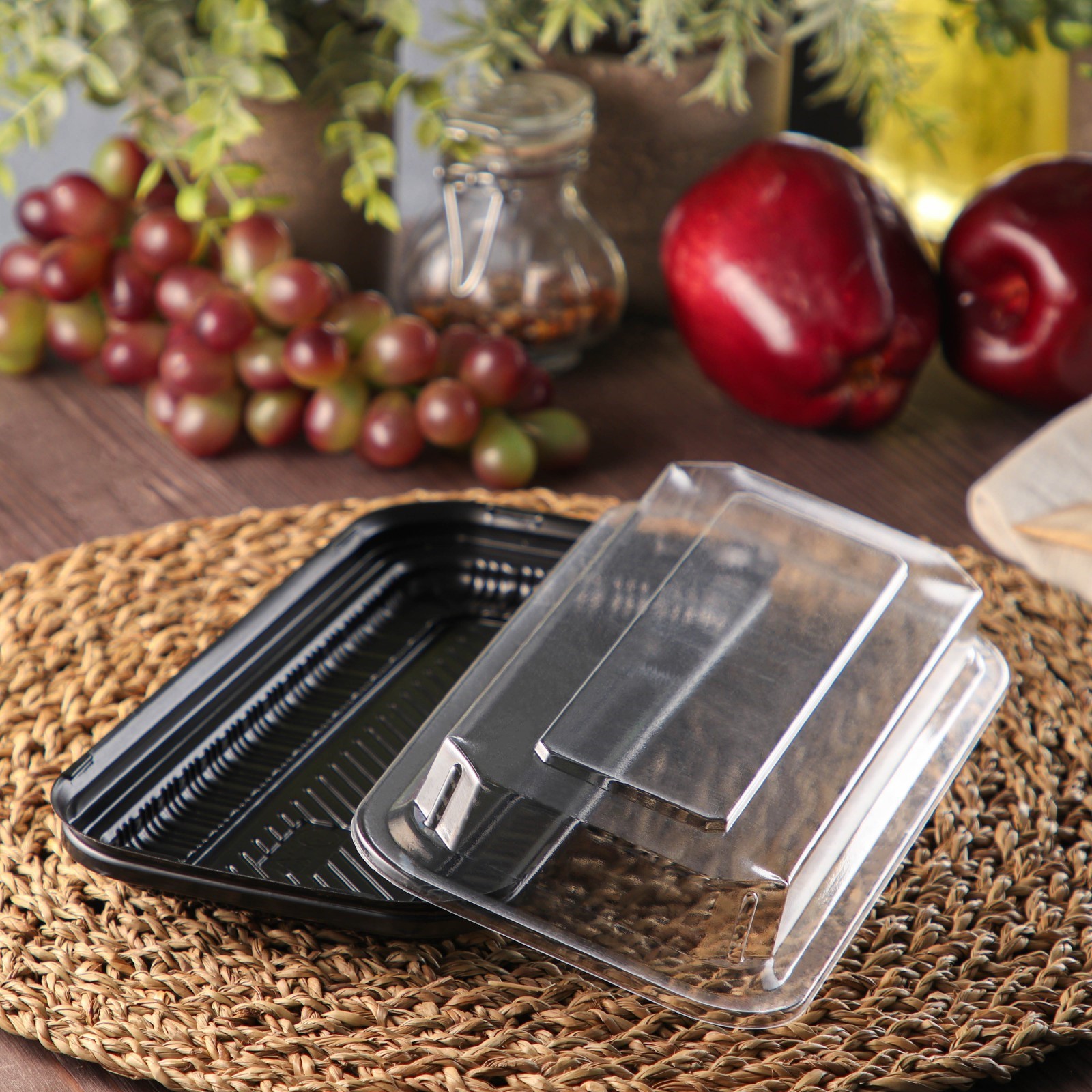 Контейнер с крышкой пластиковый одноразовый, 24x12x4,3 см, внутренние размеры 21x9x3,6 см, 750 мл, цвет чёрный