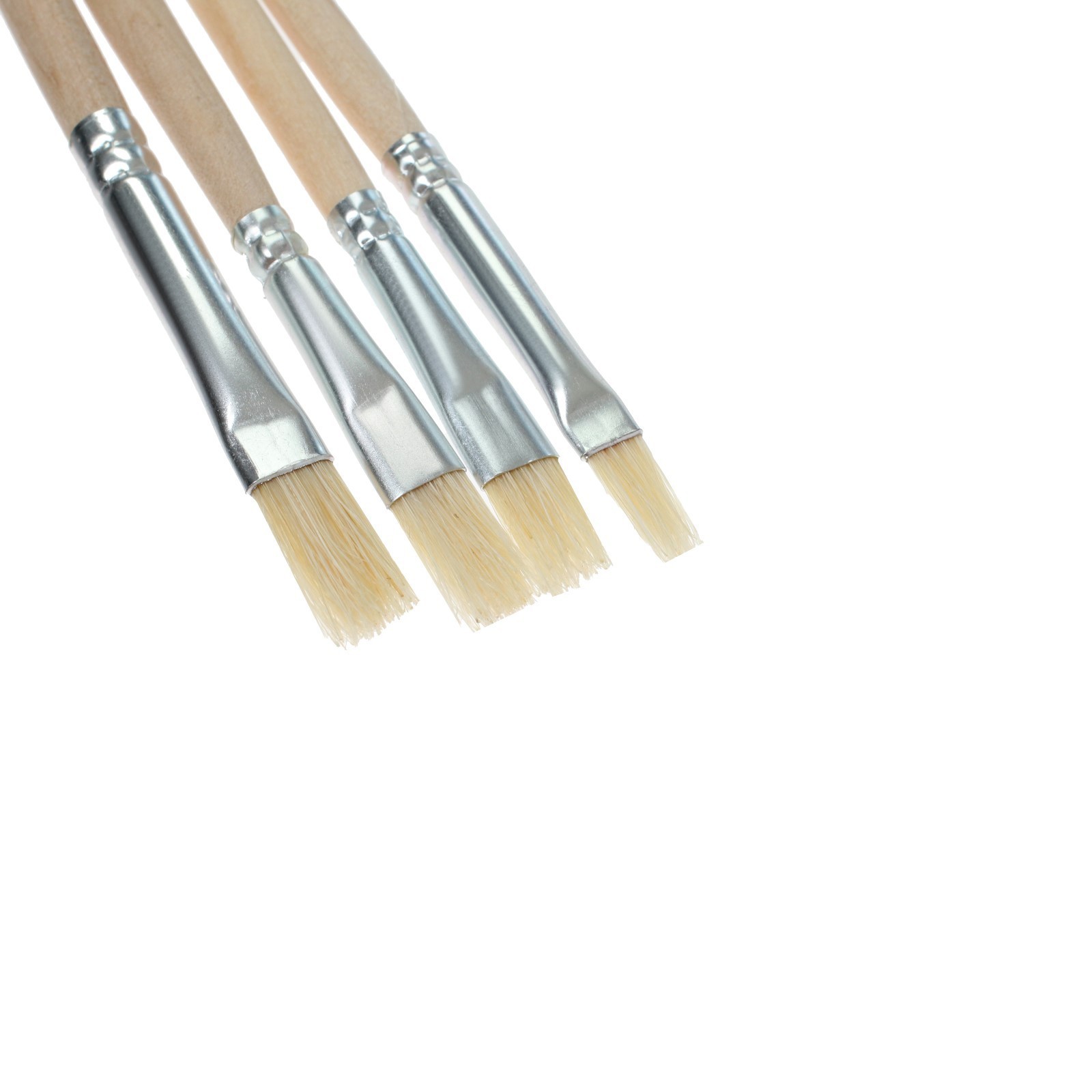 Набор кистей, щетина, плоские, 4 штуки: № 1, 2, 3, 4, с деревянными ручками, на блистере
