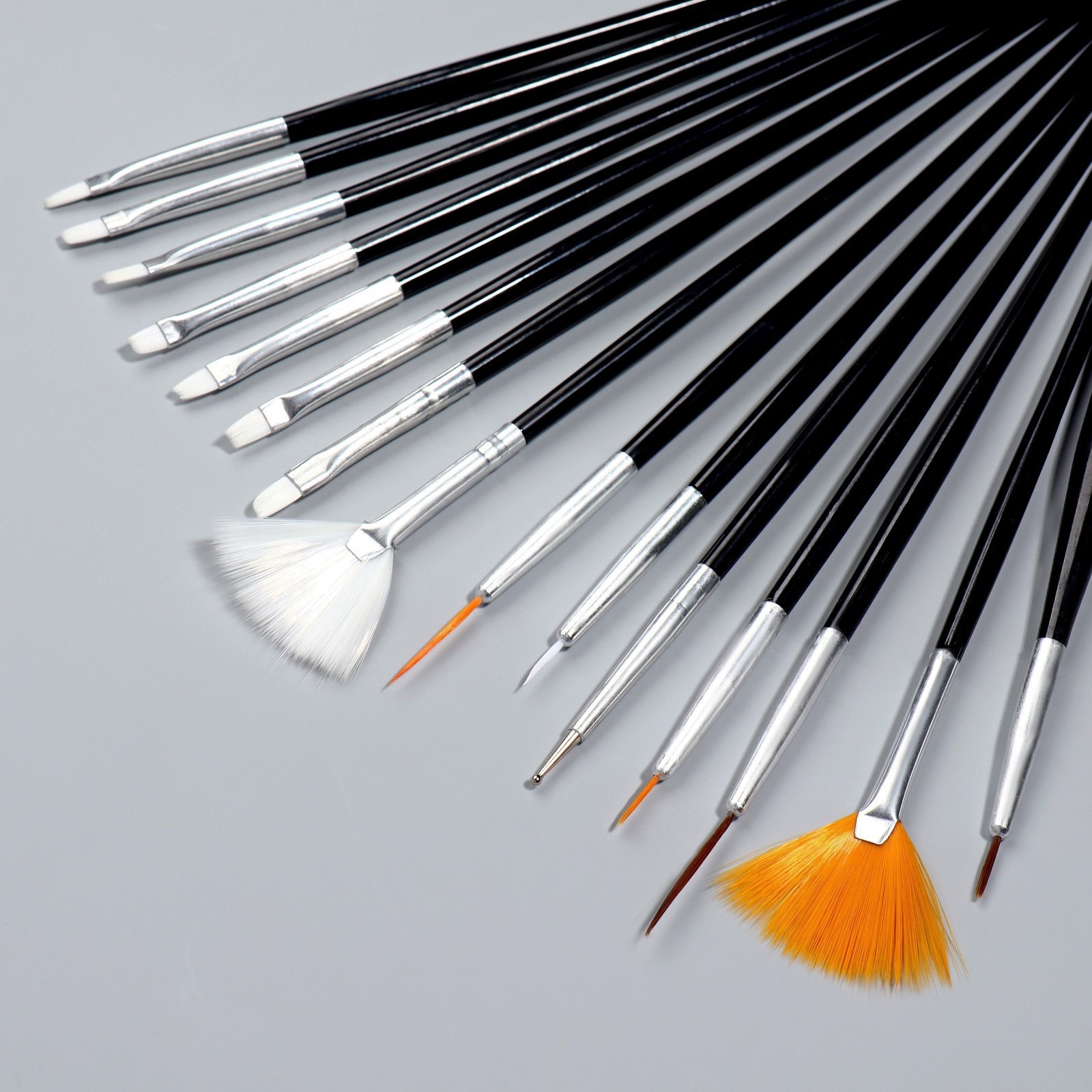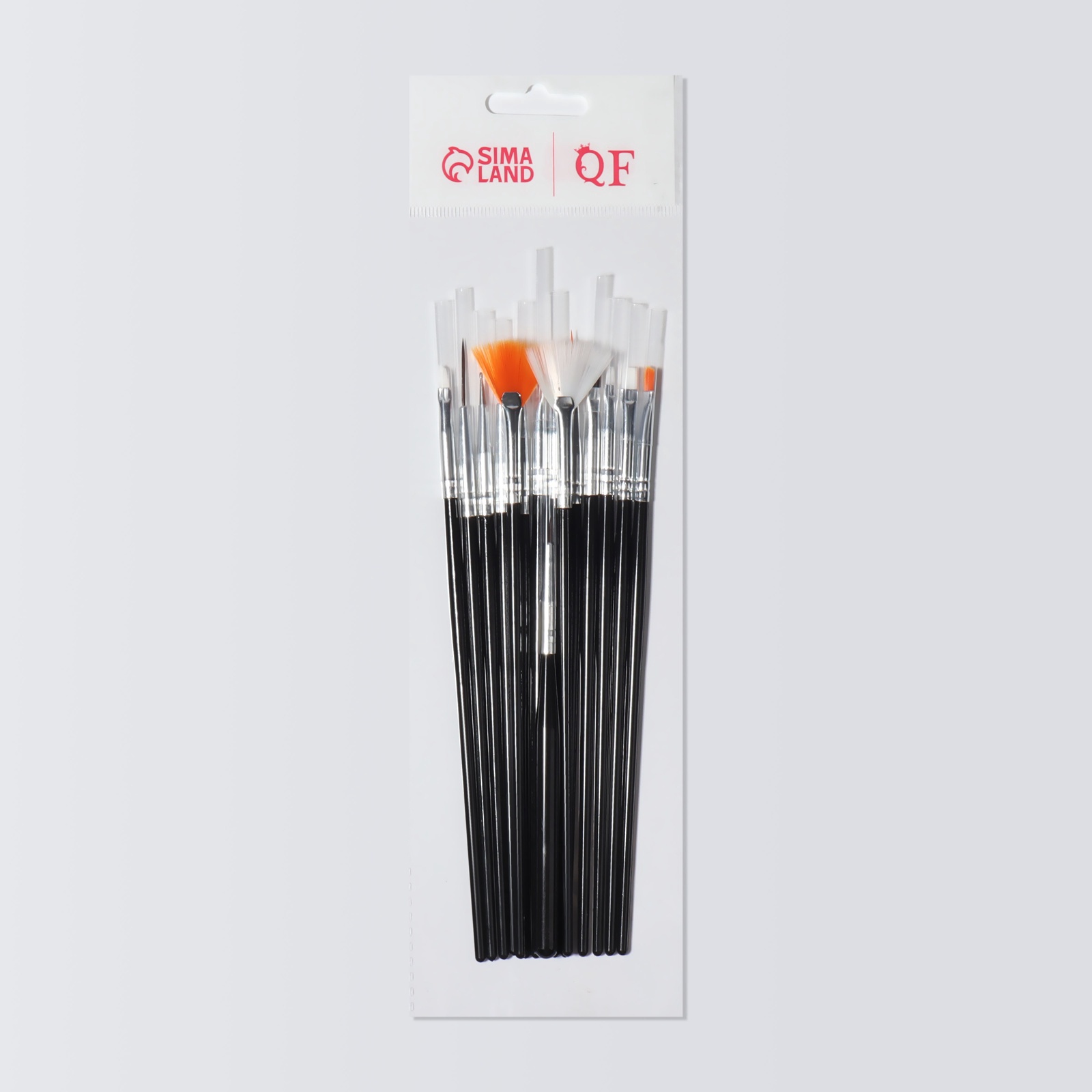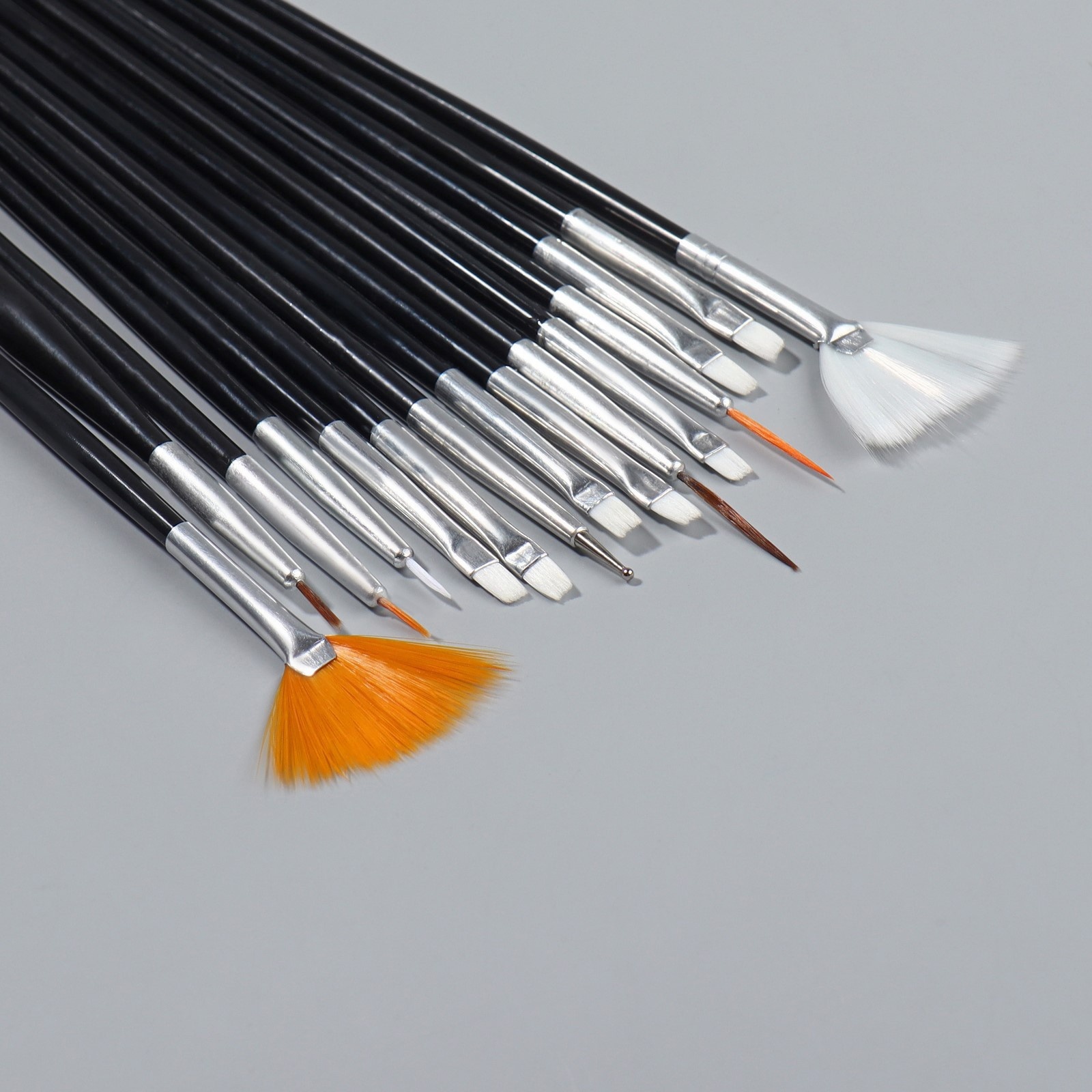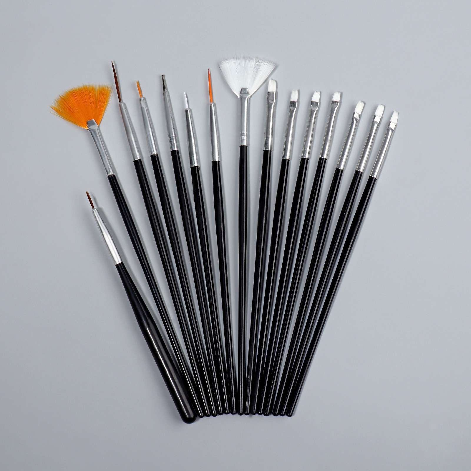 Набор кистей для наращивания и дизайна ногтей, 15 шт., чёрный