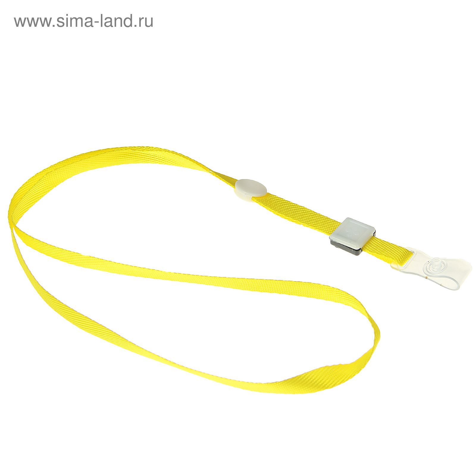 Лента для бейджа, 10 мм 80 см, плотная, с бегунком и с силиконовым зажимом, жёлтая